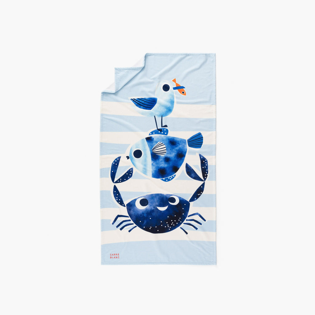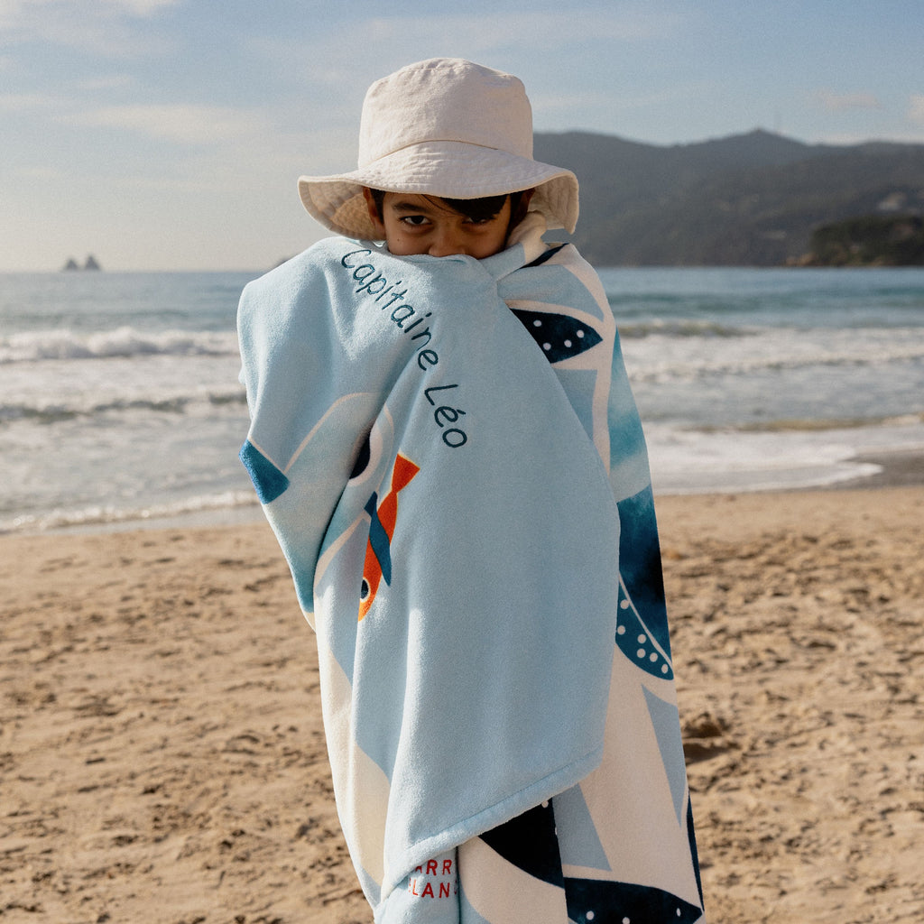 Avec le drap de plage Sami, les petits aventuriers sont prêts à plonger dans l'été ! Crabe, poisson et mouette les accompagneront pour de joyeux moments au bord de l'eau.