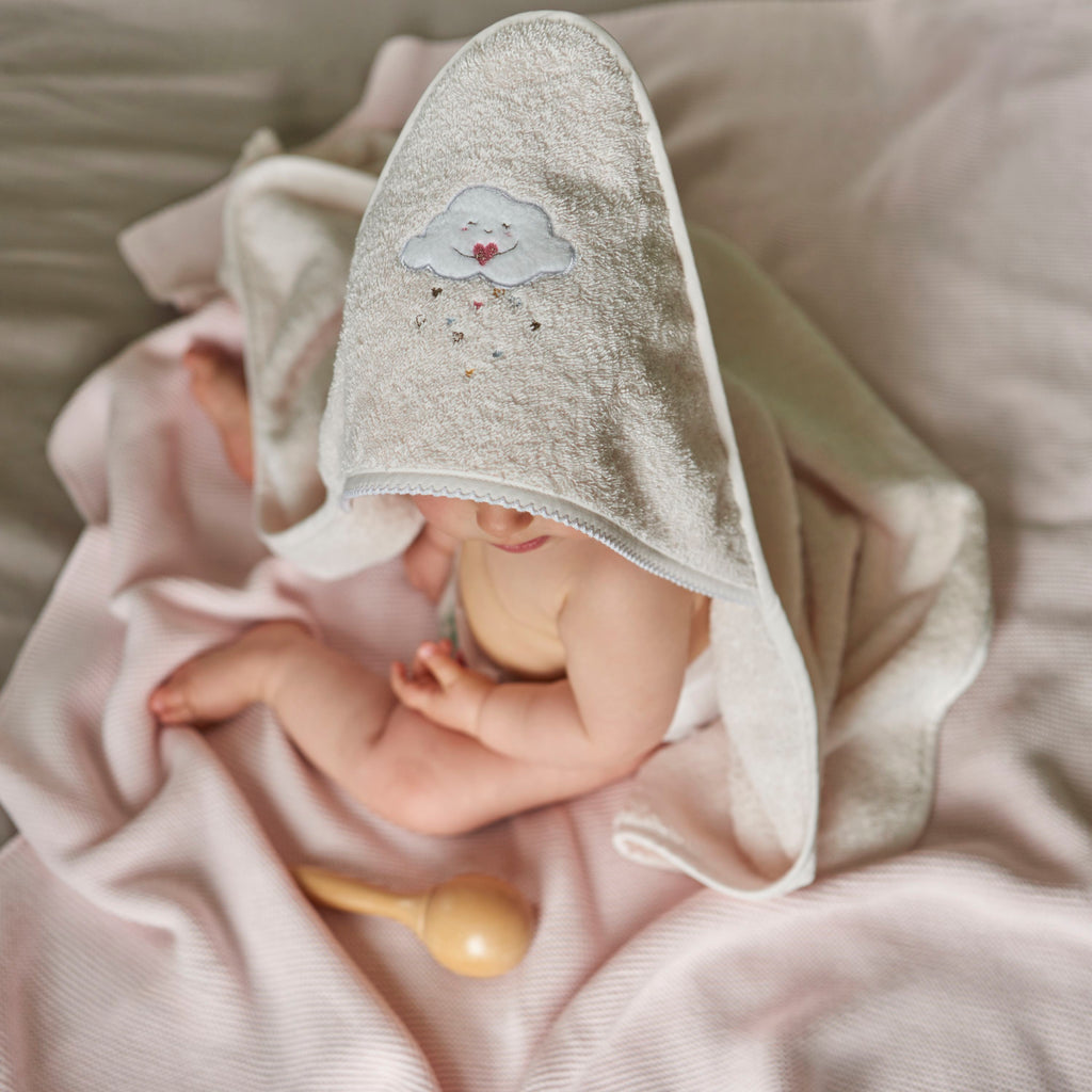 Discover the Bienvenue bath cape, the essential to keep baby warm after the bath. Made from organic cotton, this bath cape is gentle on the skin and environmentally friendly.