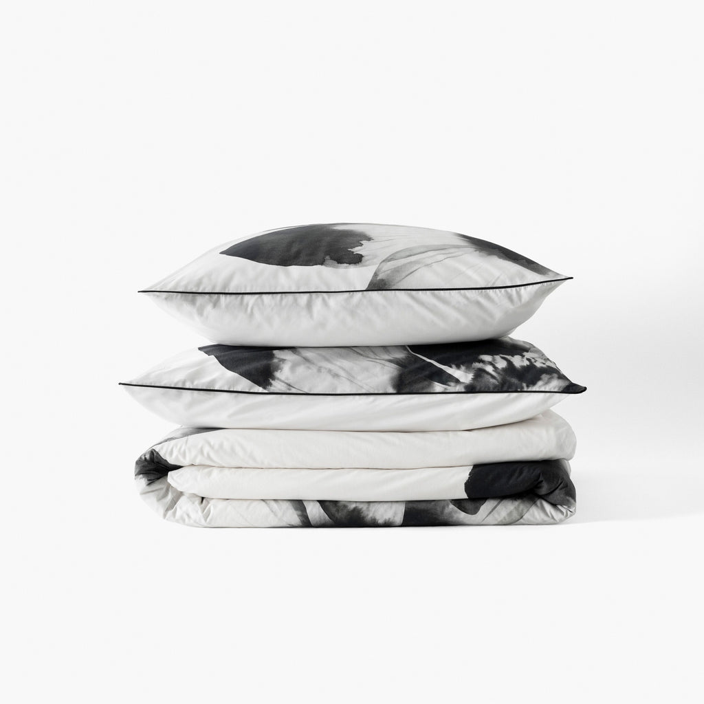 Sublimate your bed with the Danaide comforter cover and its contemporary spirit. The contrast of black and white, and its giant watercolor flower, create a surprising effect.