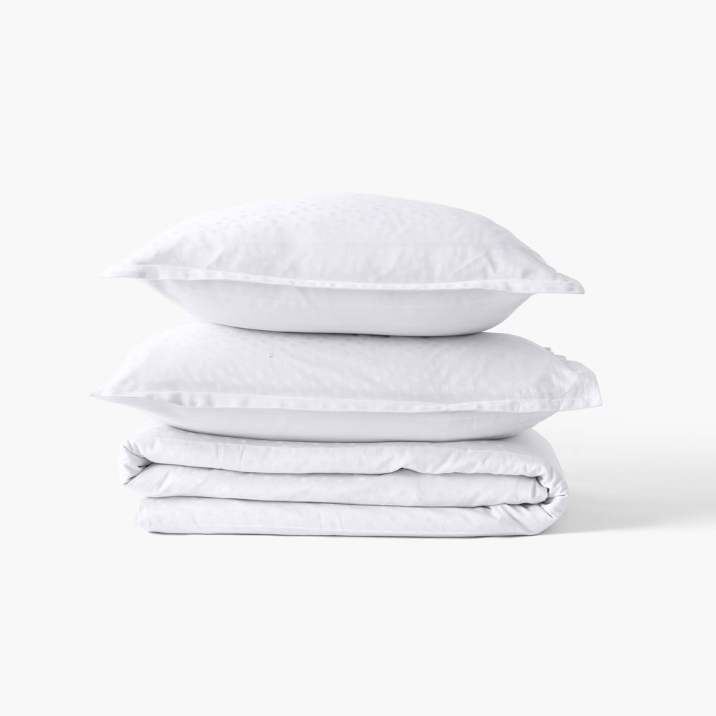 Duvet cover jacquard cotton satin polka dots and stripes Prestige white