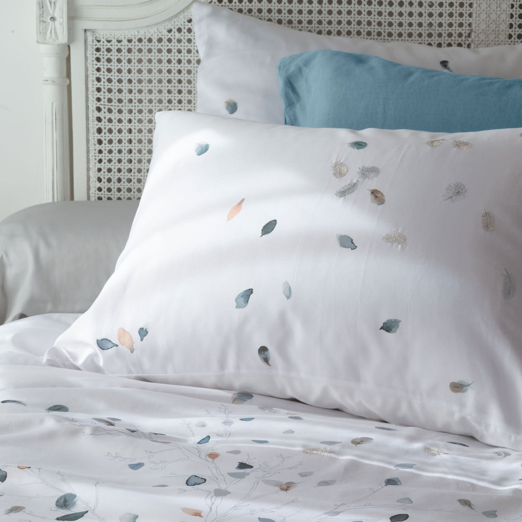 Made from cotton satin, the Equinoxe pillowcase enhances the bedroom with its frosted tones and sparkling patterns. A precious collection for elegant interiors.