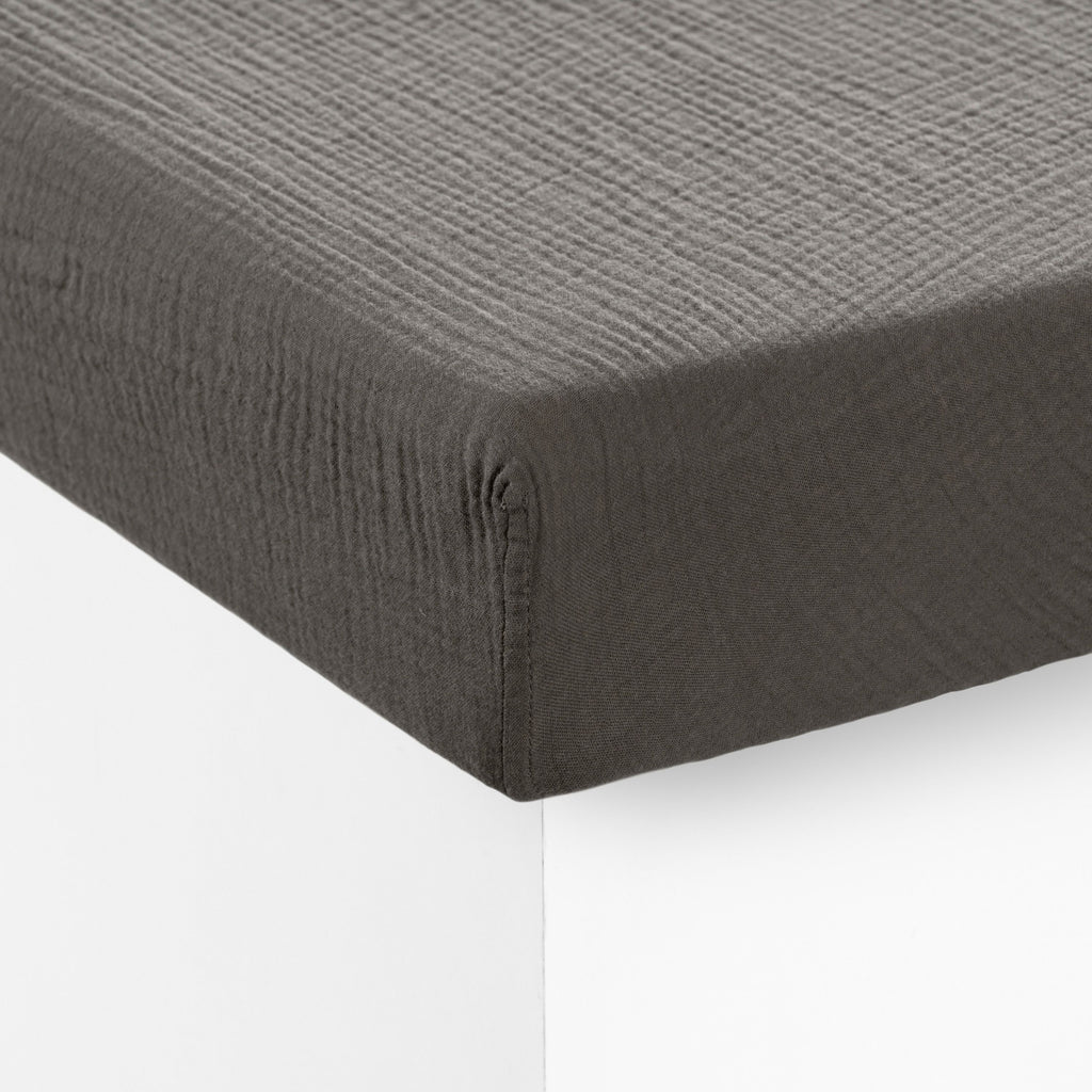 Fitted sheet cotton gauze Infini bark and absinthe