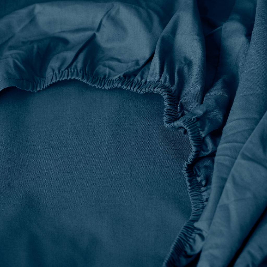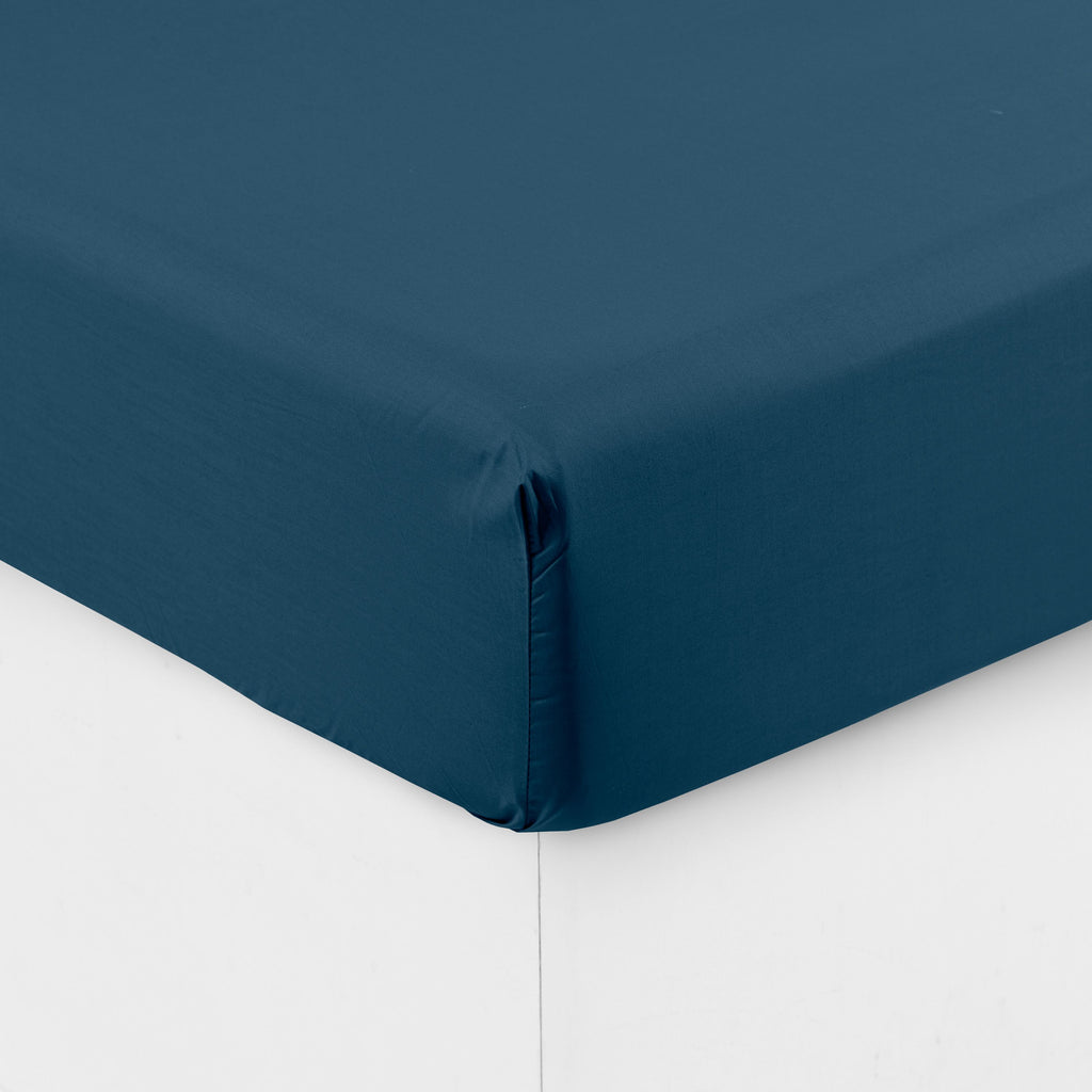 Fitted sheet percale cotton off-the-rib Neo prussian blue
