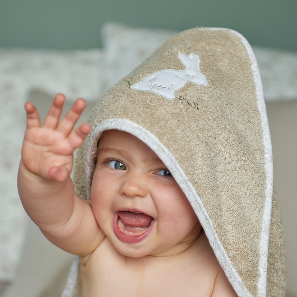 Discover the Merveille hooded bath cape, a practical and comfortable companion for parents. Featuring a pretty rabbit embroidery, it offers baby softness after the bath. Opt for the bath cape and simplify getting out of the water.