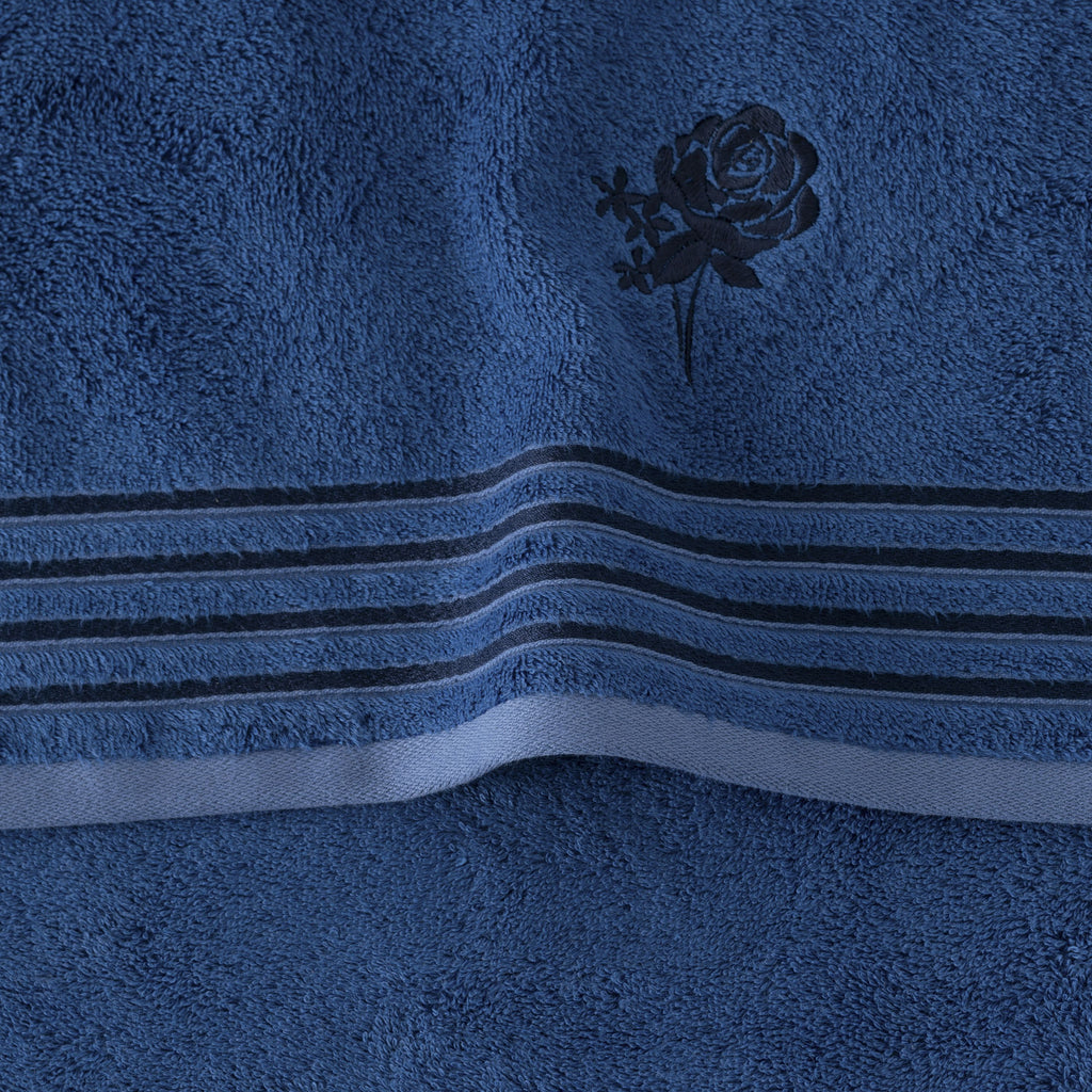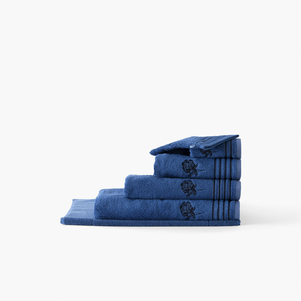 La collection Rosablue marie avec finesse le style floral et bord de mer. Son bouquet brodé, associé aux rayures, apporte une touche de raffinement unique à votre salle de bain.
