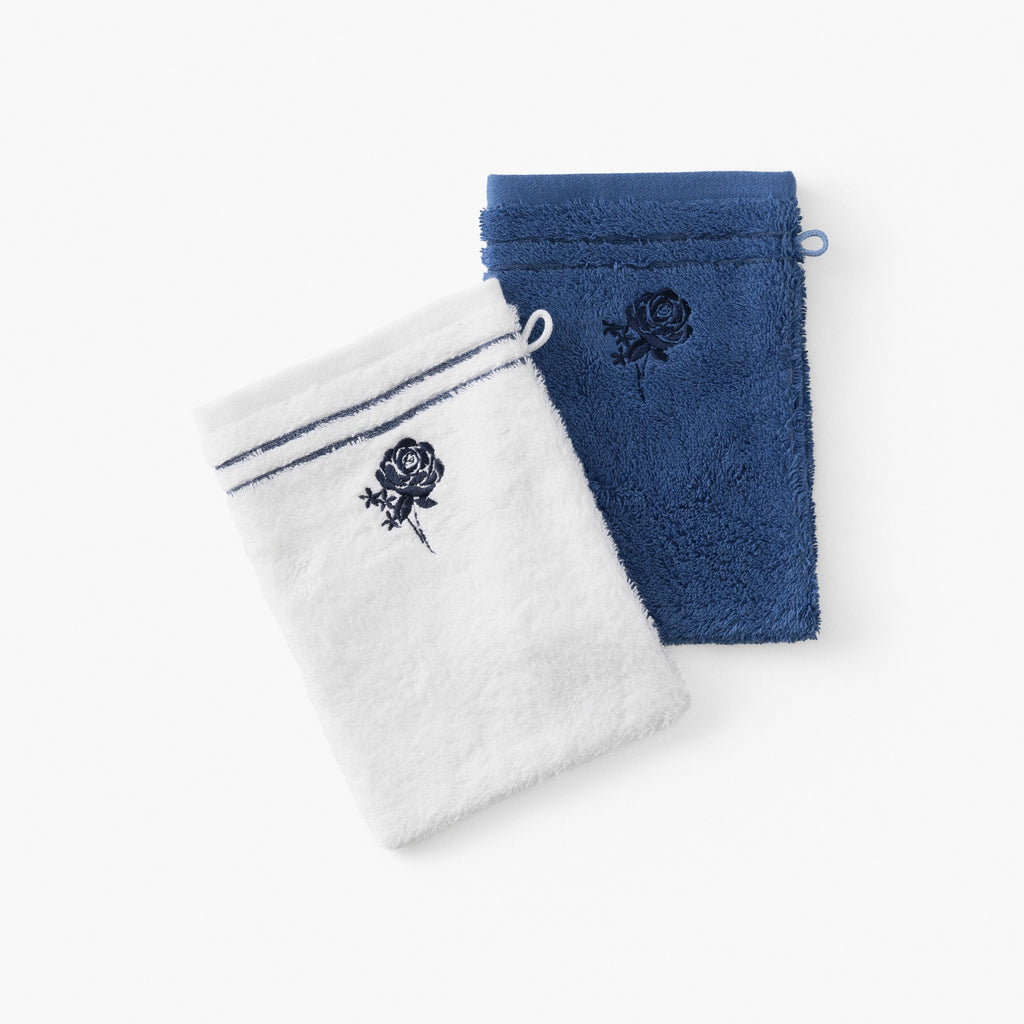 La collection Rosablue marie avec finesse le style floral et bord de mer. Son bouquet brodé, associé aux rayures, apporte une touche de raffinement unique à votre salle de bain.