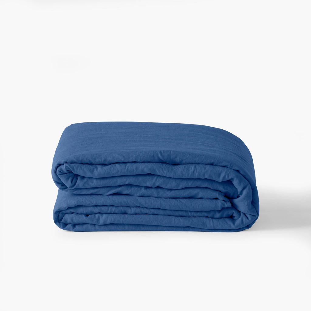 The Songe bleu de chine duvet cover is made from two different materials. It has a washed linen side and a washed cotton side. It's ideal for all seasons, thanks to its thermo-regulating properties that keep you cool in summer and warm in winter. Its crinkled look makes it very fashionable, and you can match it with the other colours in the Songe collection.