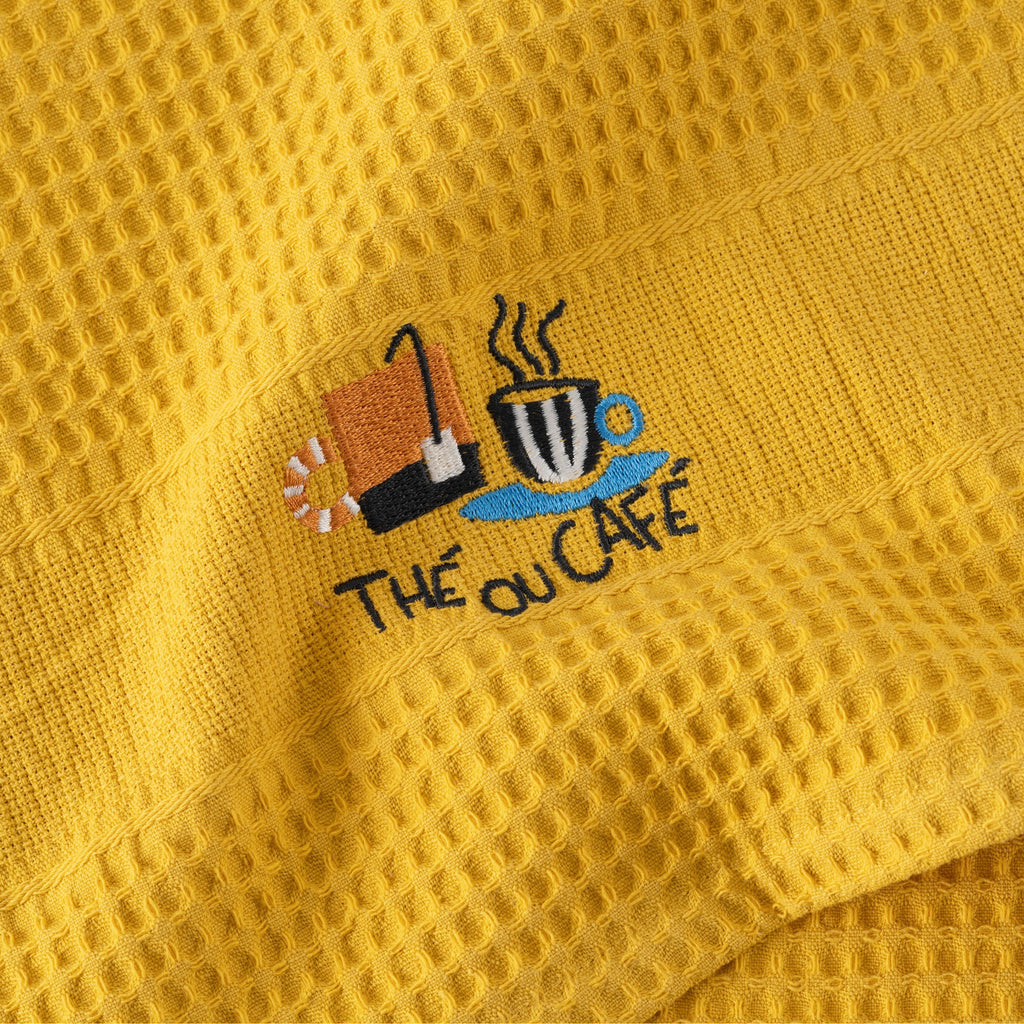 As practical as it is colorful, adopt the embroidered T'Café honeycomb tea towel. Choose from Team Croissant, Matin Vilain, Thé or Café to add a cheerful touch to your kitchen.