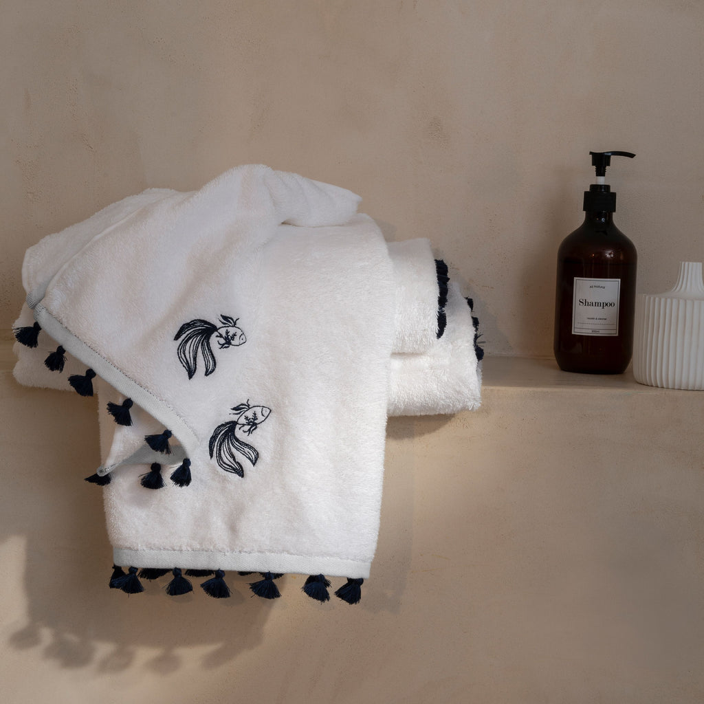 La collection Demi Lune revisite le motif marin avec des teintes océaniques et des finitions pompons audacieuses, apportant une touche moderne et fraîche à votre intérieur. Un véritable clin d’œil à l’été !