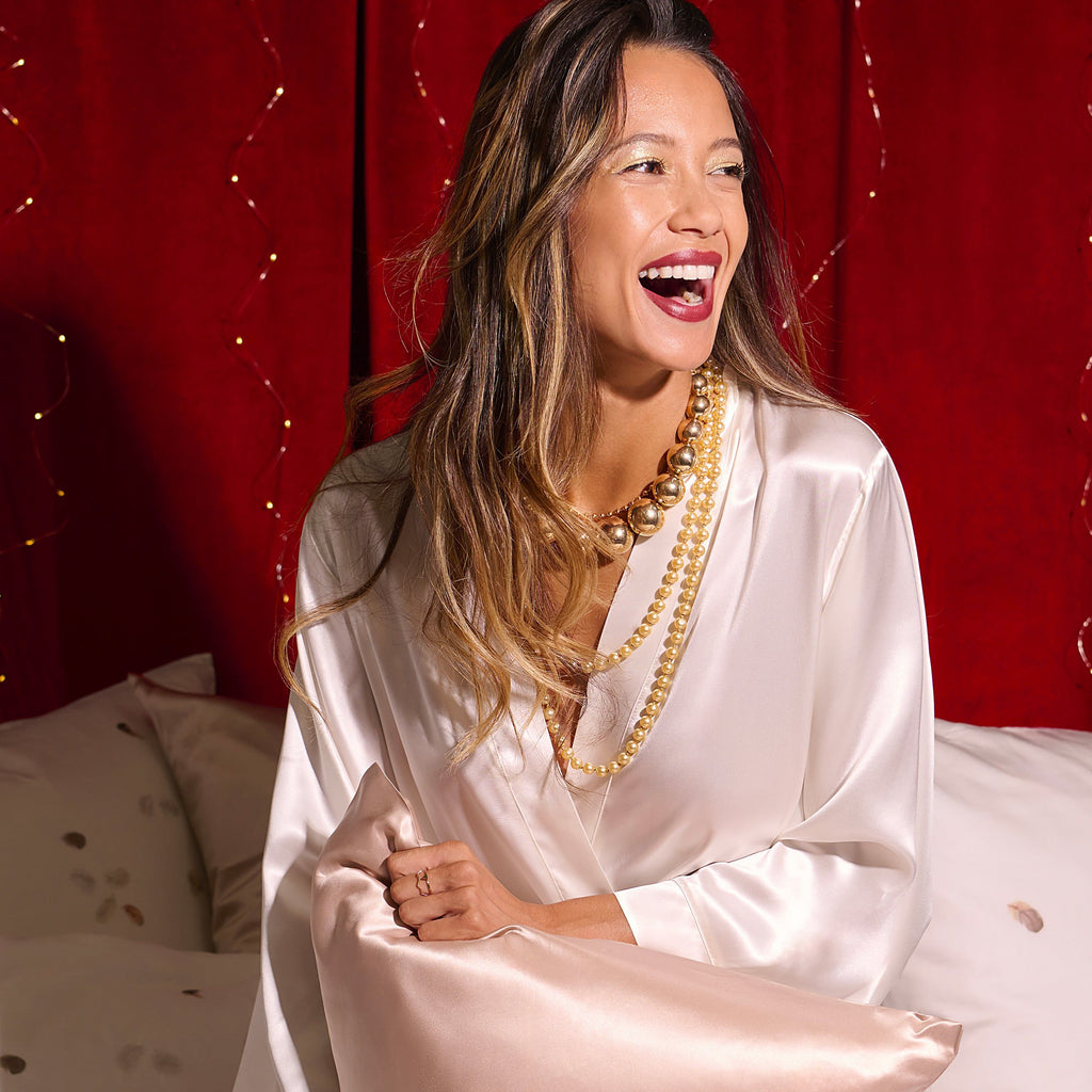 Slapen op een zijden kussensloop helpt de huid gehydrateerd te houden en wrijving te verminderen, wat vlekken en pluis kan veroorzaken. Een eenvoudige schoonheidsroutine die zijn voordelen al laat zien zodra je wakker wordt.