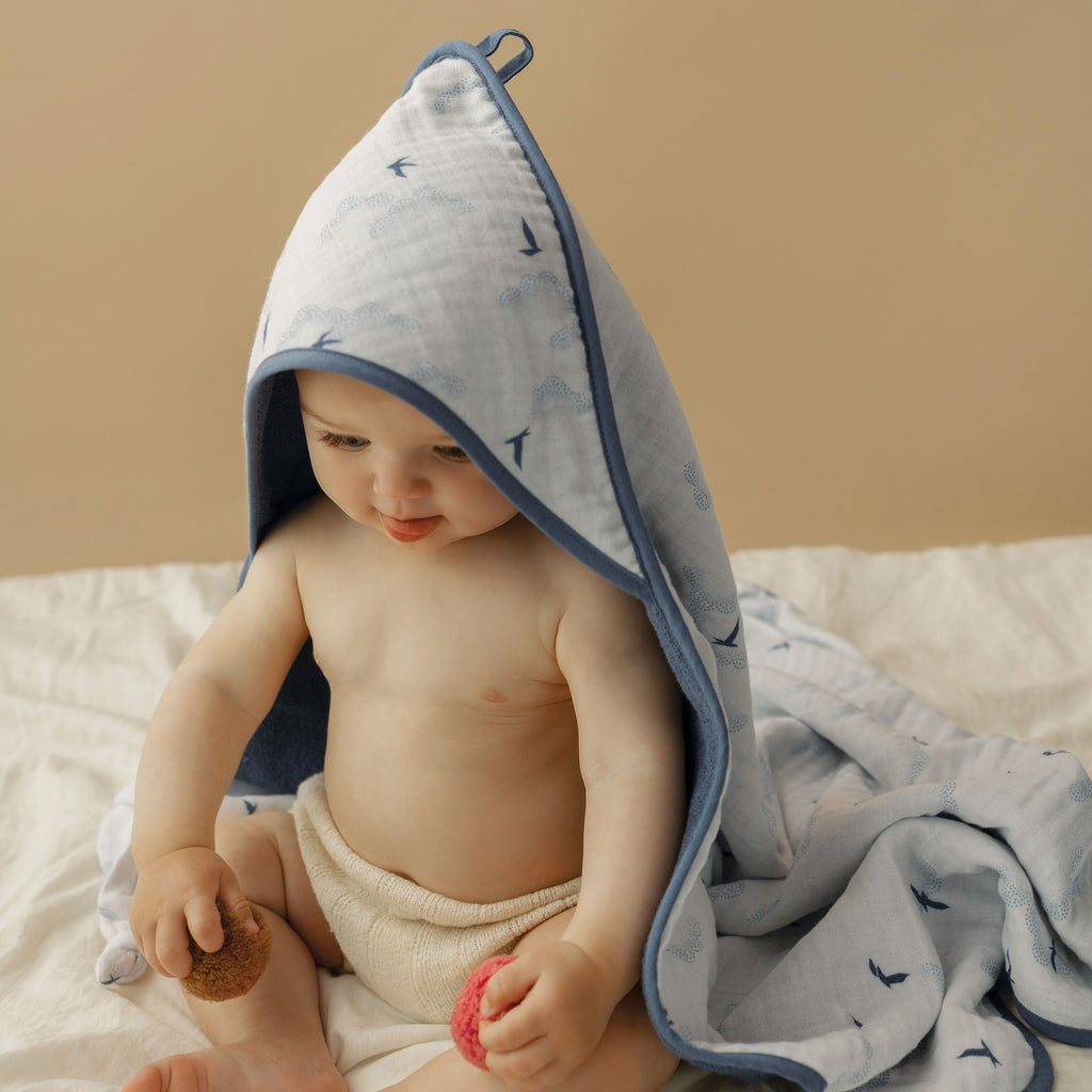 Dubbelzijdige badcape van katoen en katoengaas Lino-inkt
