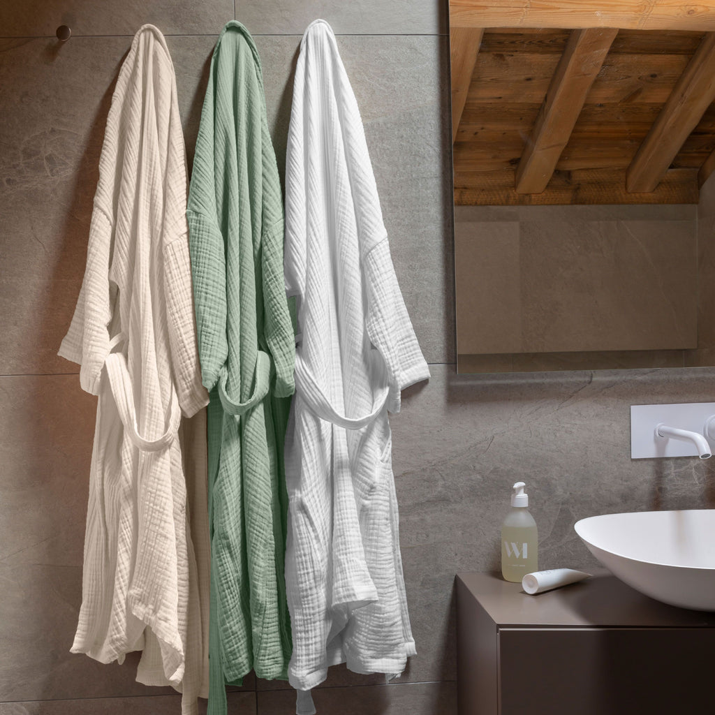 Verwen jezelf op natuurlijke wijze met onze nieuwe serie badjassen van biologisch katoenen gaas, een aangename, lichte stof. Dit homewear kledingstuk is GOTS-gecertificeerd, respecteert de natuur en je huid dankzij de samenstelling en is perfect voor je dagelijkse cocooning-momenten. Stel je eigen beautyset samen met de rest van de Naturelle-collectie: flanel, hoofdband of make-up remover vierkantjes. Een perfect cadeau-idee!