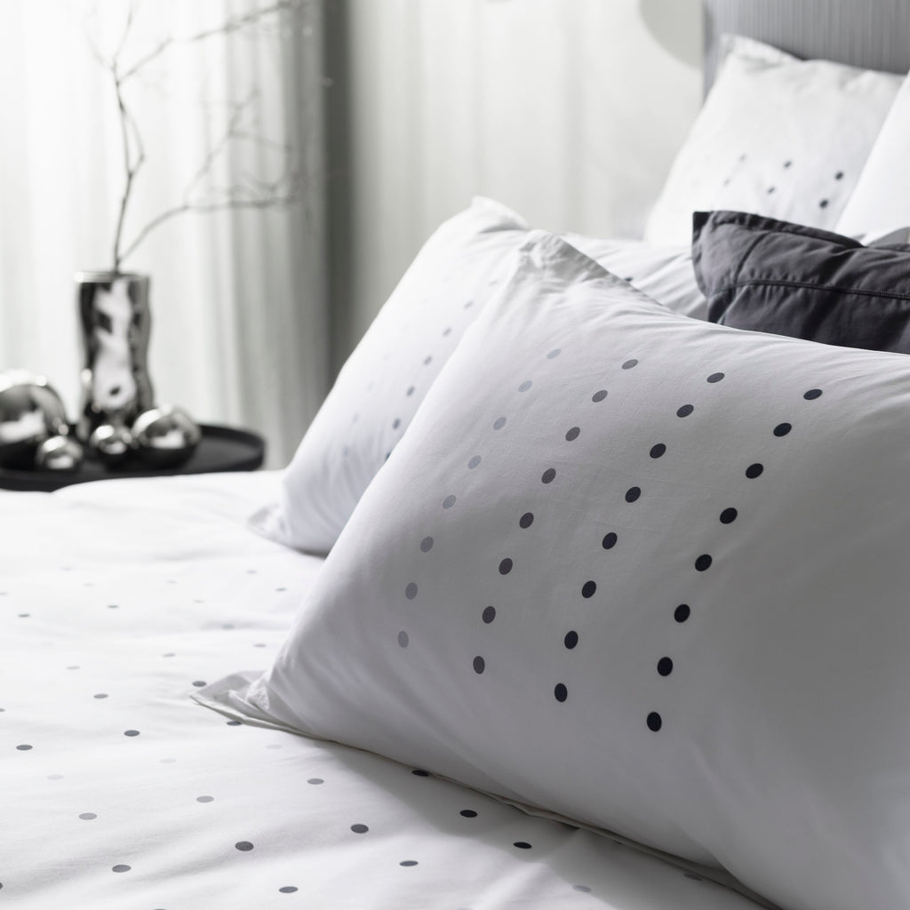 Het Dotsy kussensloop van perkal katoen biedt zachtheid en comfort gedurende de hele nacht. Het eigentijdse zwarte patroon is perfect voor zowel klassieke als stedelijke interieurs.