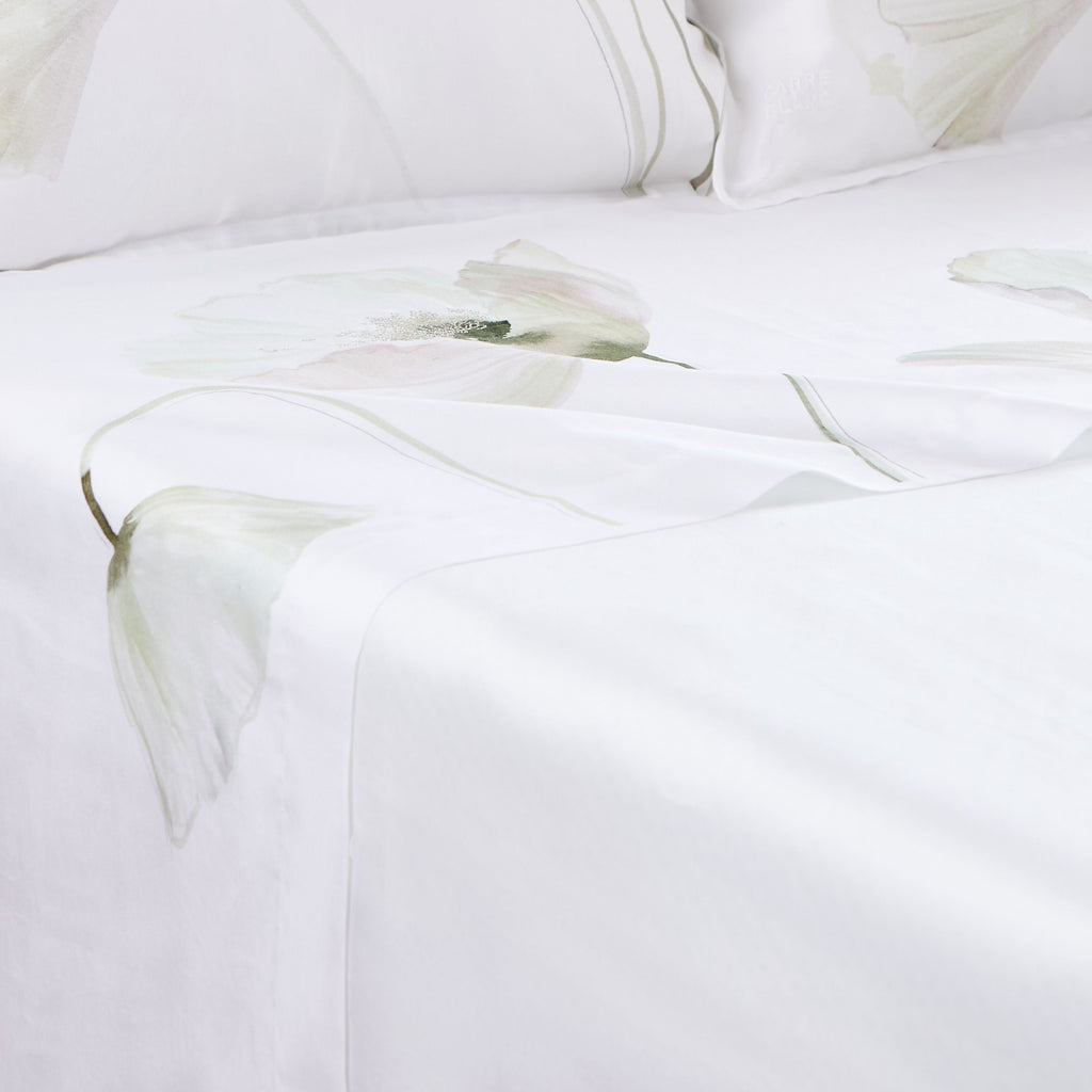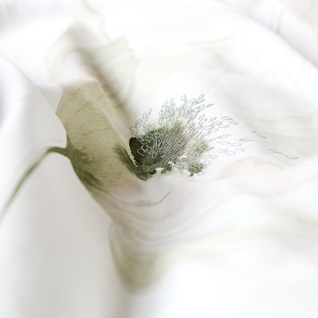 Kies voor verfijning met de Éphelia-collectie, waarin materialen, aquarelverf, borduurwerk en subtiele witten samenspelen in een delicaat lichtspel. Een bloemencompositie van witte klaprozen, symbolen van slaap, vrede, herinnering... en nog veel meer.