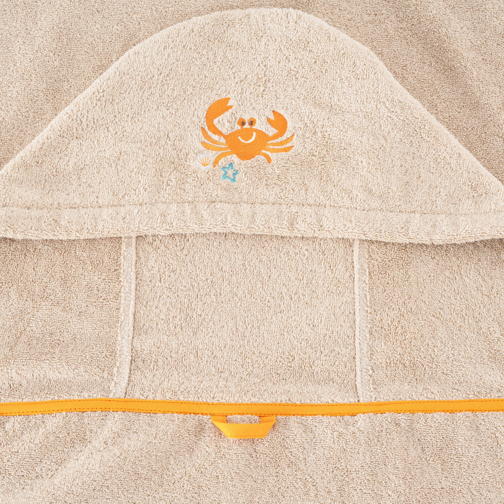 La collection Escapade marie des couleurs vives à un fond sable tout doux. Une broderie de crabe apporte une touche de malice, pour des moments de bain pleins de joie.