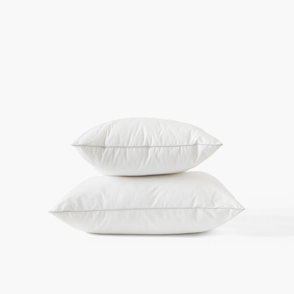 Een eersteklas synthetische 100% Dacron Suprelle microvezelvulling voor een stevig hoofdkussen ontworpen voor zijslapers. Het Suprême ferme kussen heeft een 100% katoenen tijk met het Carré Blanc logo en grijze ha biezen.