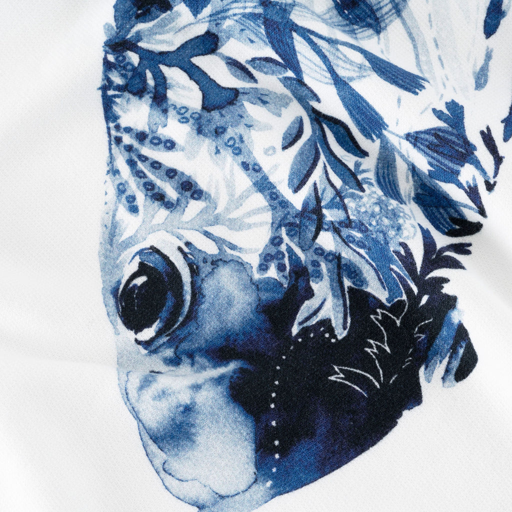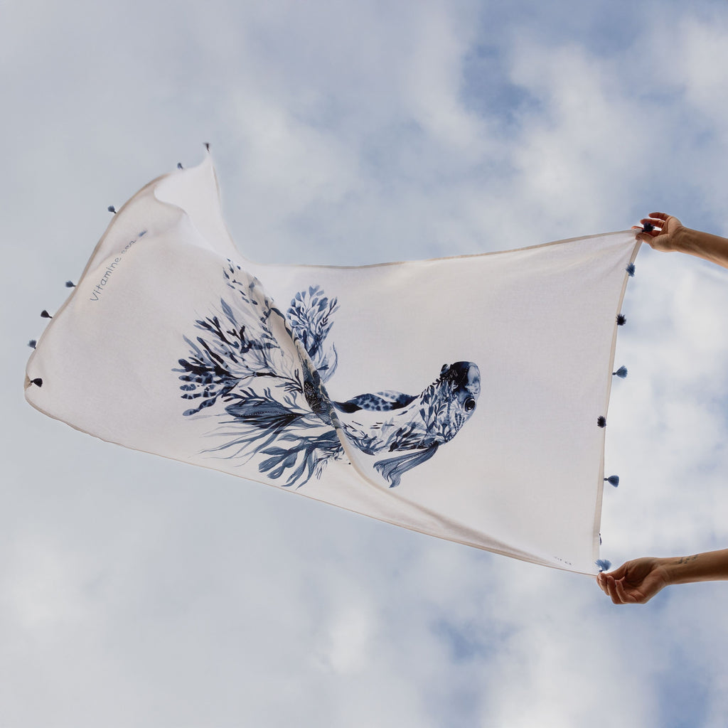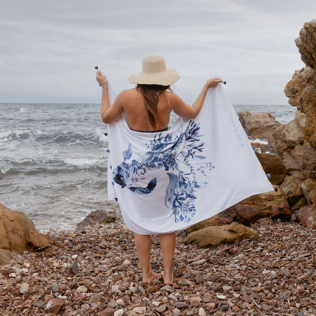 La collection Demi Lune sublime le motif marin avec des nuances aquarellées. Son bleu apaisant, inspiré du bord de mer, invite à rêver d'évasion et de douceur.
