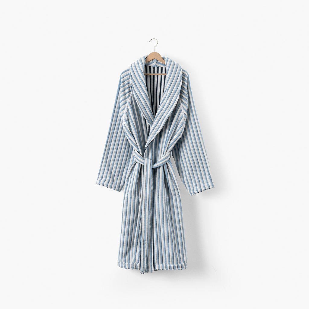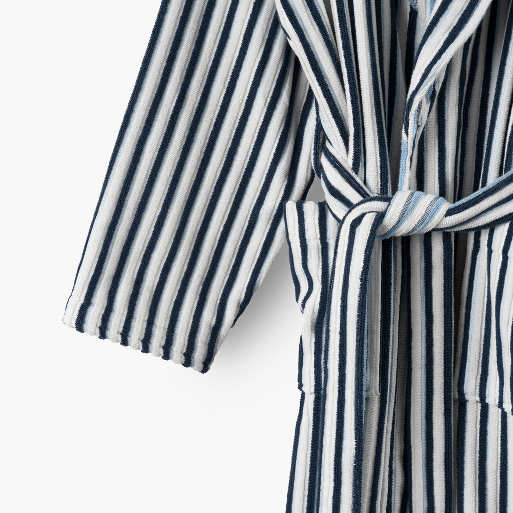 Gemengde katoenen badjas met omkeerbare marine- en hemelsblauwe riem
