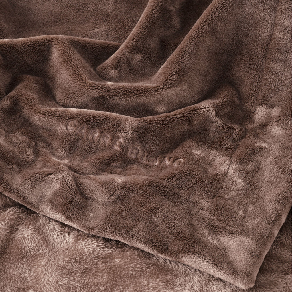 Ontdek de Oslo plaid, een herfst-winter essential. De ultrazachte fleece stof en het Carré Blanc borduursel maken het een elegante keuze om je huis mee te verwarmen.