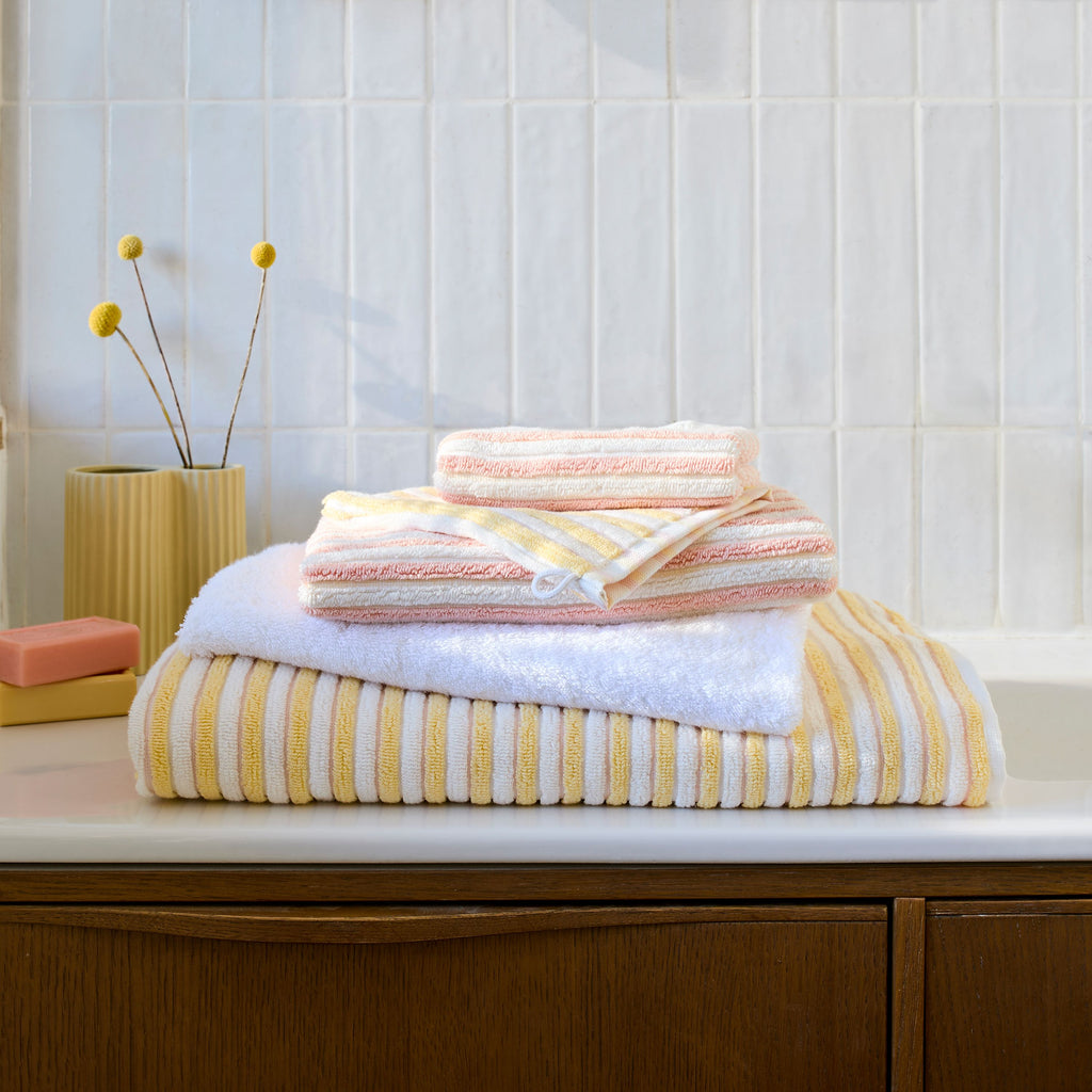 Laat je verleiden door onze Combo-reeks: een tweekleurige, omkeerbare jacquard badreeks. Levendige kleuren om je badkamer deze lente/zomer op te vrolijken!