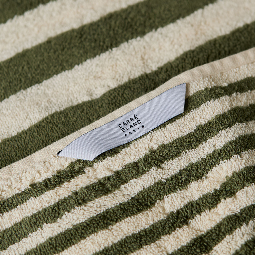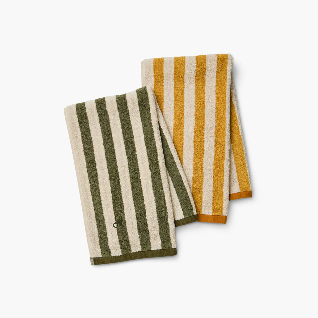 Kies voor een badlinnencapsule waarbij brede strepen aan de ene kant contrasteren met fijnere strepen aan de andere kant, waardoor een mooi contrast ontstaat. Borduursels van giraffes of dinosaurussen voegen een vleugje fantasie en affectie toe.