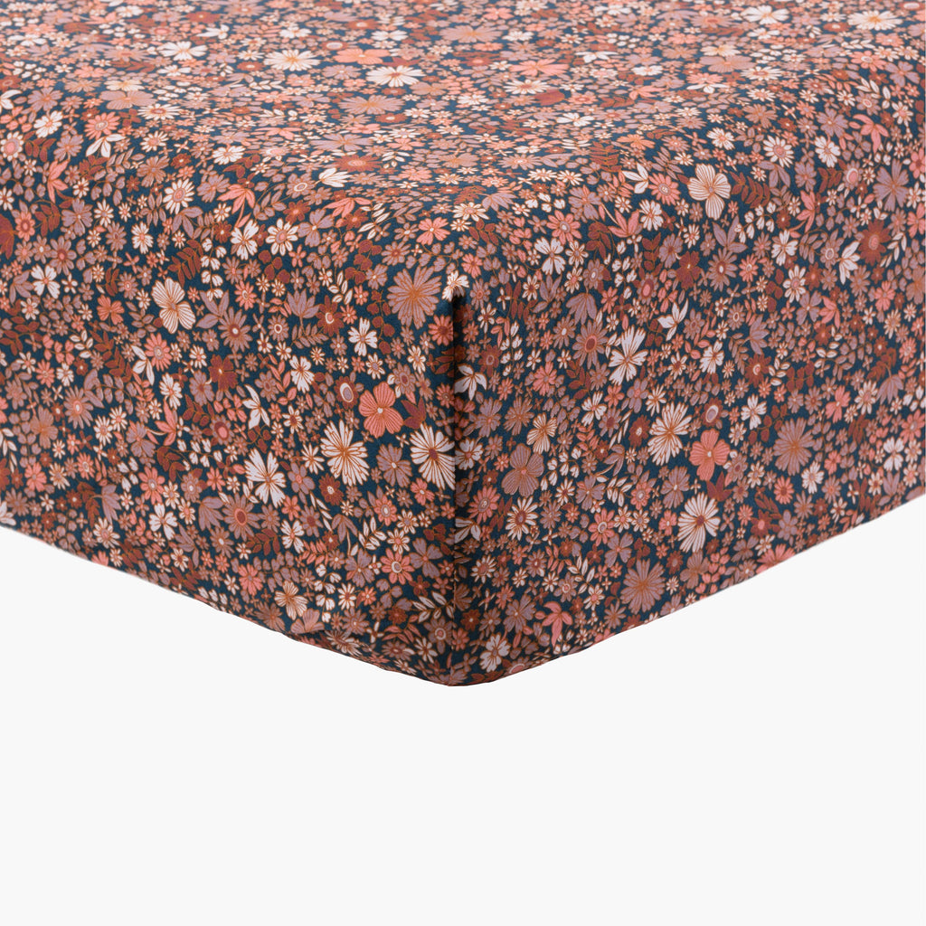 Hoeslaken perkal katoen Neo pruisisch blauw gebloemd