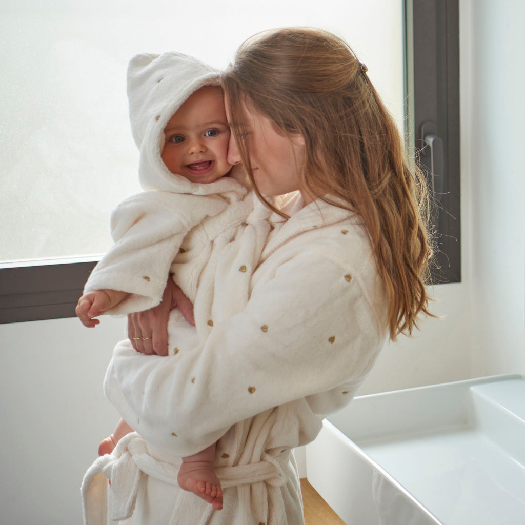 Katoenen kinderbadjas Amore ivoor