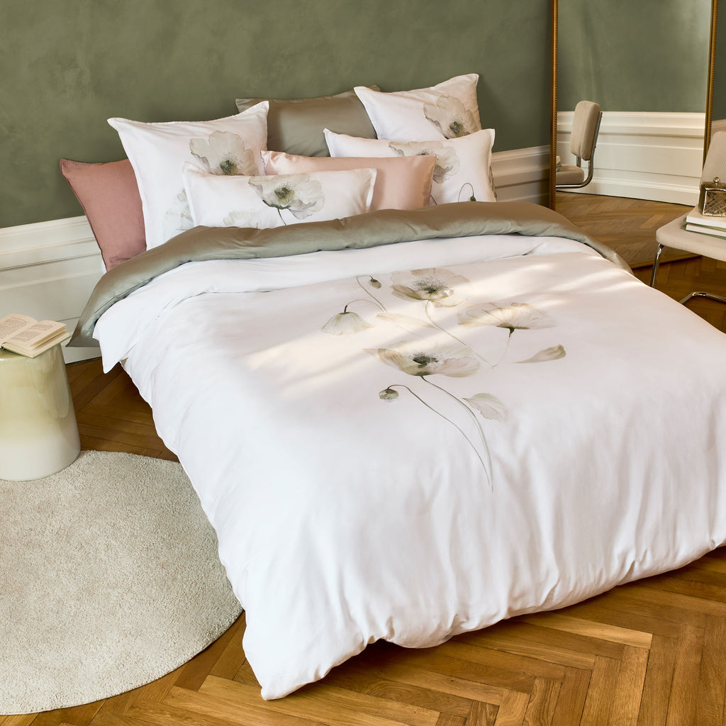 Kies voor verfijning met de Éphelia-collectie, waarin materialen, aquarelverf, borduurwerk en subtiele witten samenspelen in een delicaat lichtspel. Een bloemencompositie van witte klaprozen, symbolen van slaap, vrede, herinnering... en nog veel meer.
