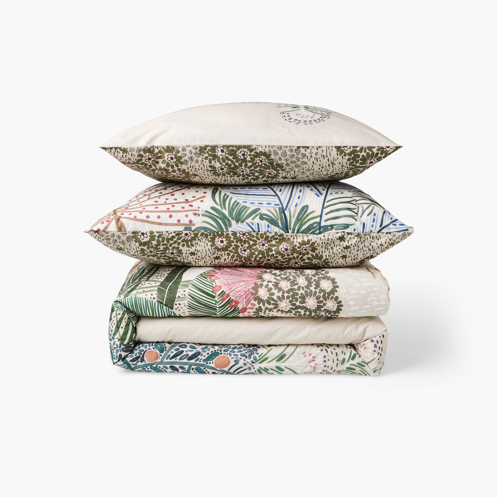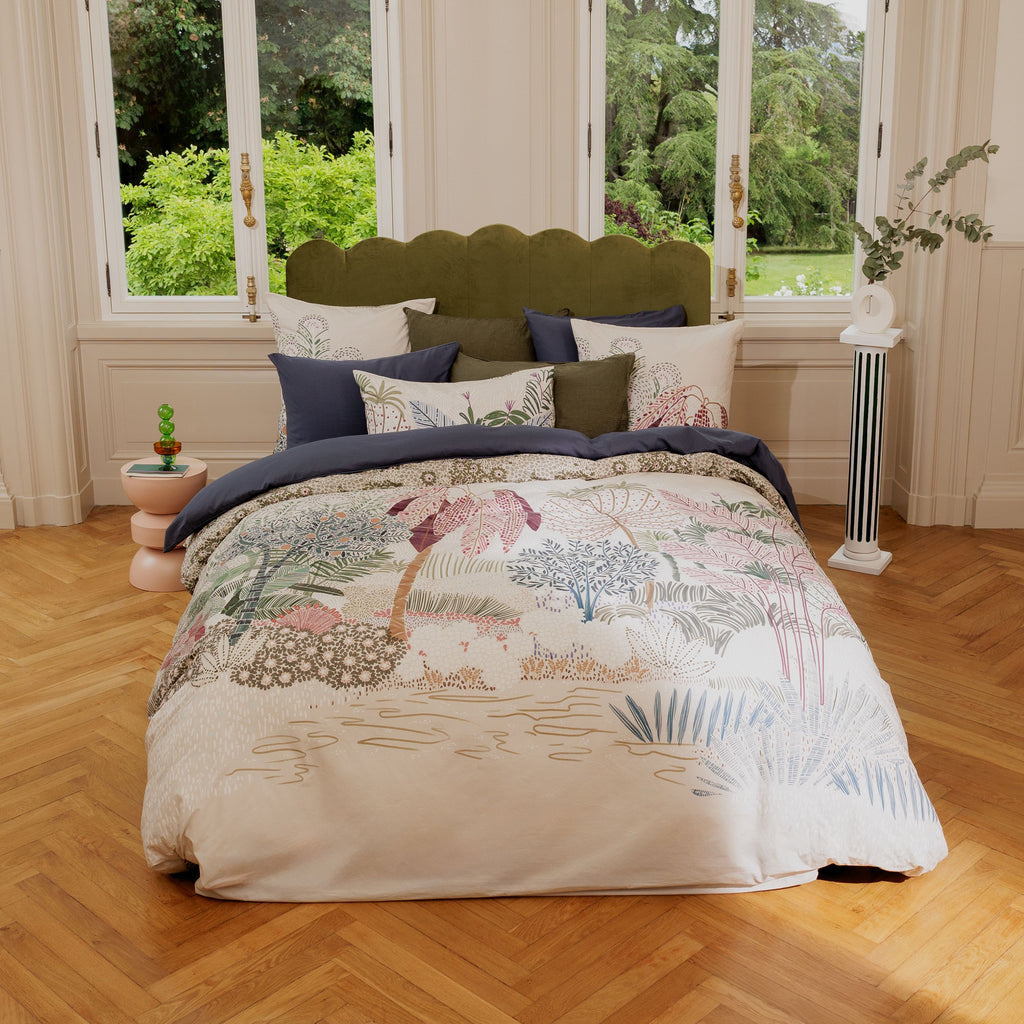 Stel je een XXL fresco voor waar elke streek, elke stip, een betoverende promenade creëert. Hier vermengen oogverblindende citrusvruchten zich met exotische bladeren en weven zo een levendig decor dat bruist van kleur en licht. Het is een uitnodiging om te reizen tussen twee werelden: de weelderige orangerie van een Frans paleis en de wintertuin.