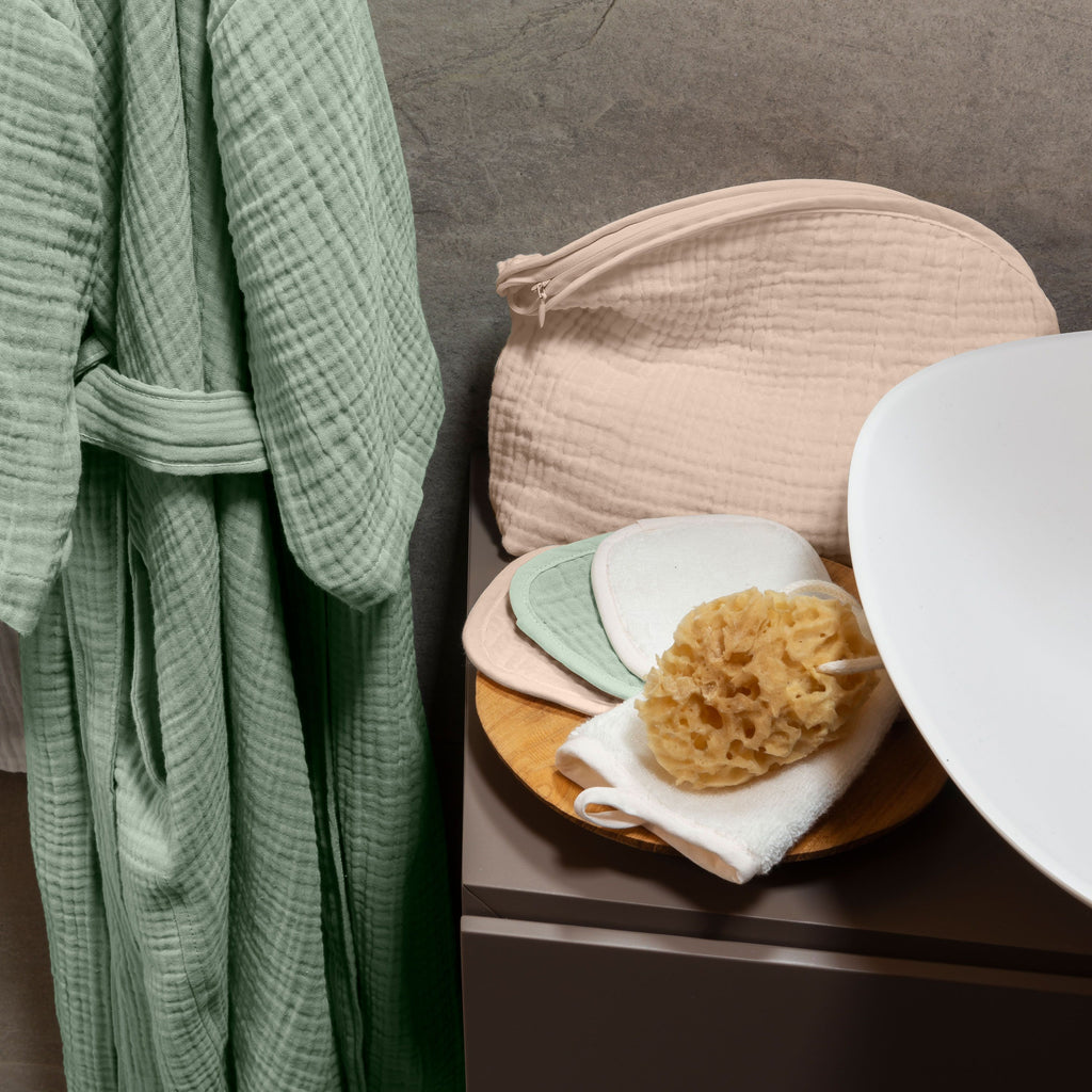 Verwen jezelf op natuurlijke wijze met deze hoofdband van biologisch katoen en katoengaas met klittenbandsluiting. Dit accessoire is GOTS-gecertificeerd, respecteert de natuur en je huid dankzij de samenstelling en zal je dagelijkse huidverzorgingsroutine begeleiden. Stel je eigen beautyset samen met de rest van de Naturelle-collectie: molton, badjas of make-up remover vierkantjes. Een perfect cadeau-idee!