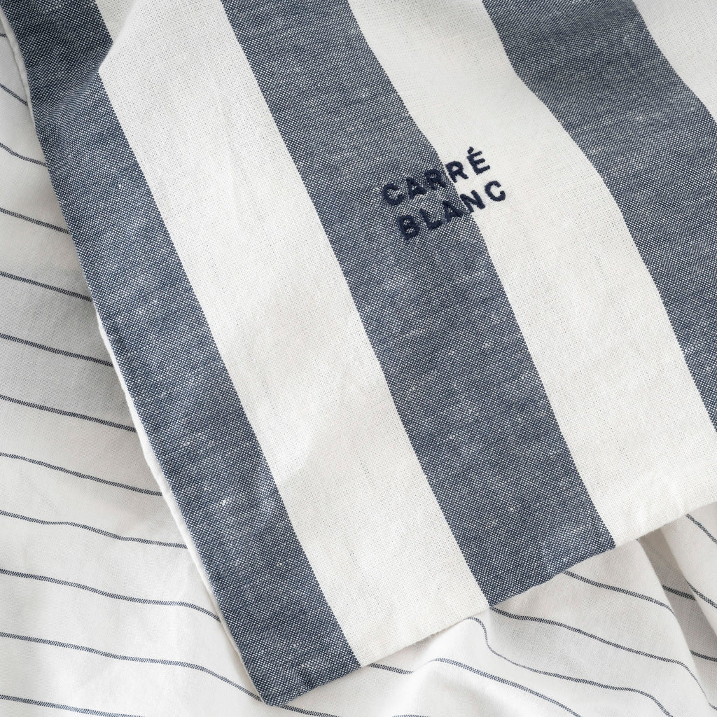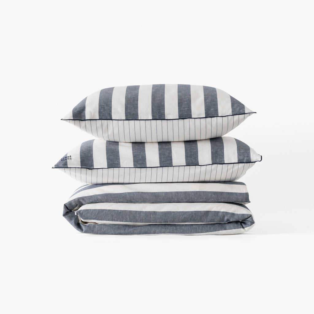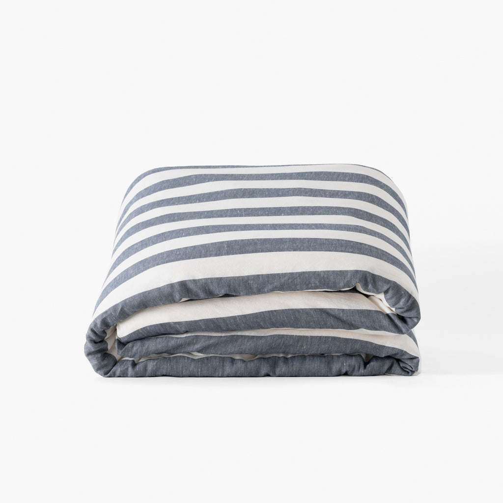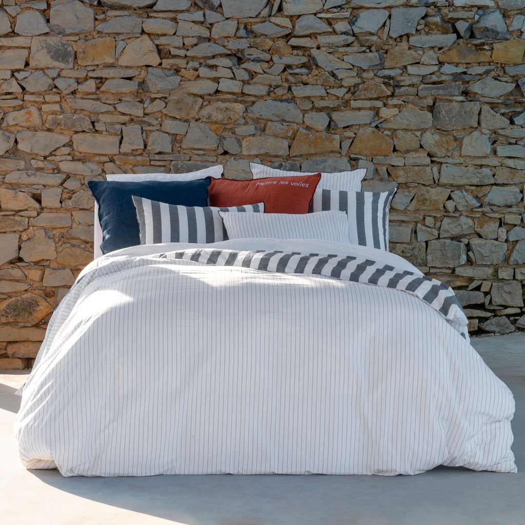 Omkeerbaar dekbedovertrek linnen en gewassen katoen Tempos marine gestreept