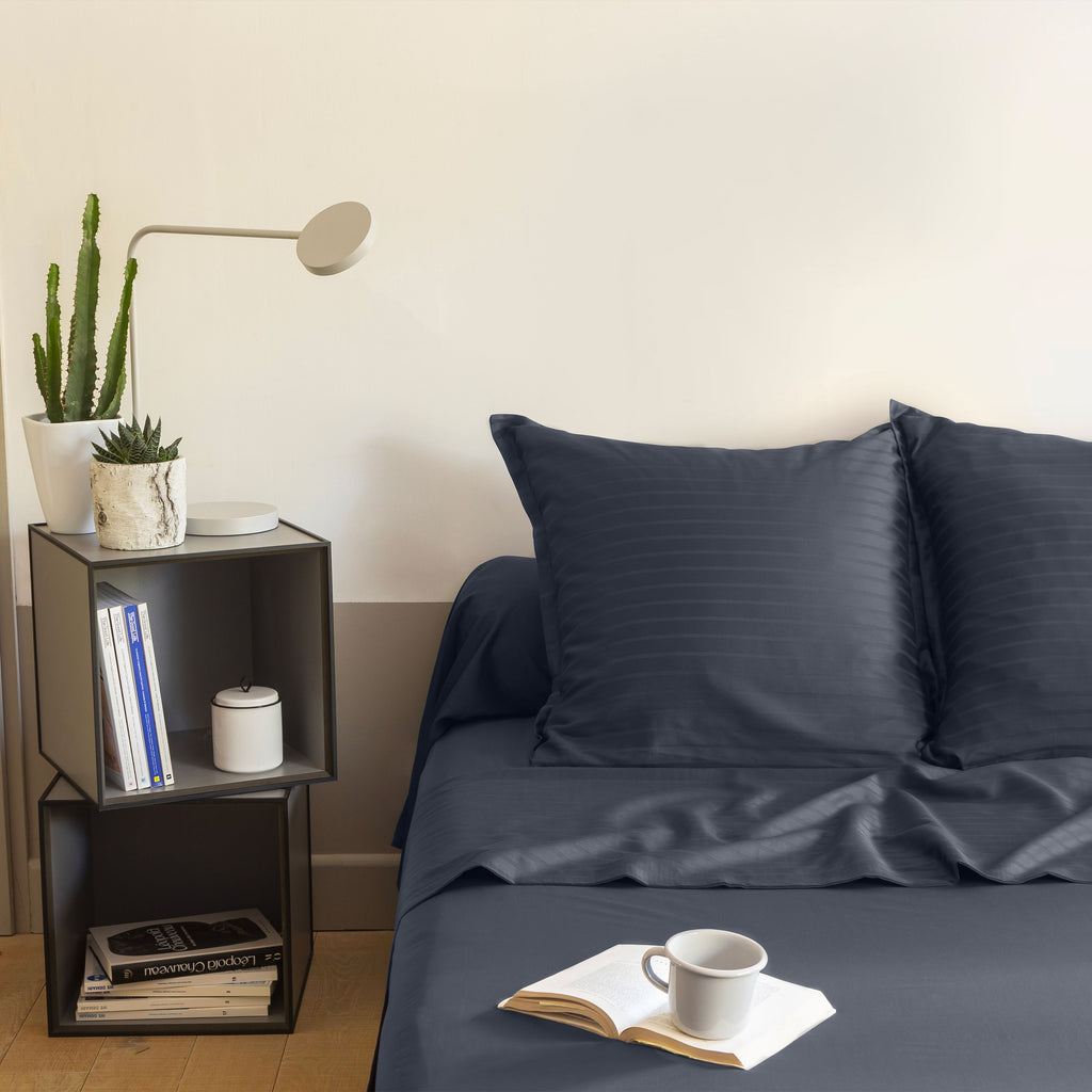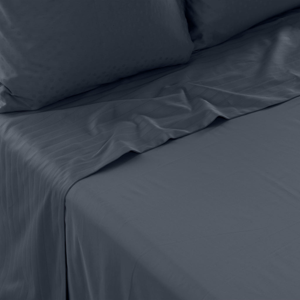 Prestige Midnight Blue Jacquard satijnen katoenen laken met stippen en strepen