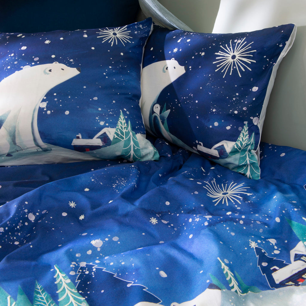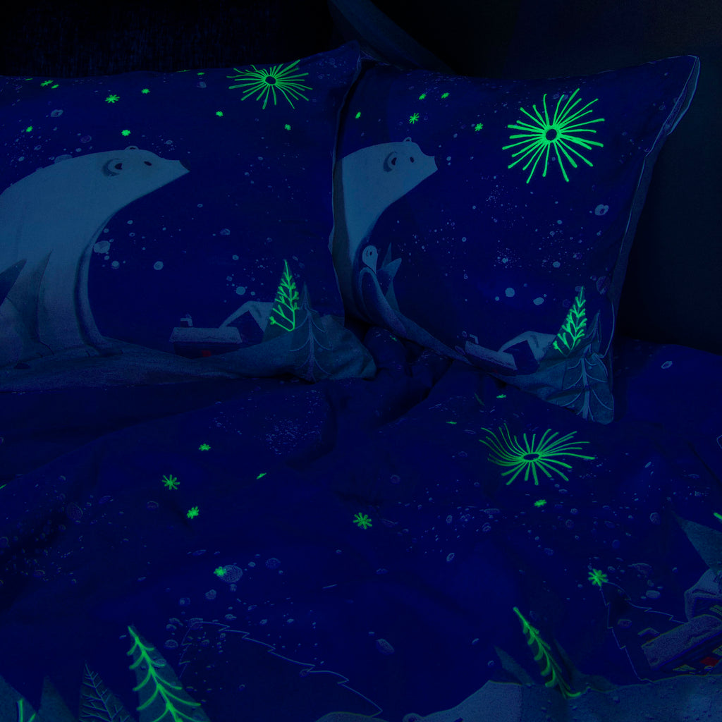 De kerstsfeer is springlevend met het Stellaire kussensloop en het glow-in-the-dark borduurwerk. Laat de magie binnenkomen met de zachte sneeuwdeken, fonkelende sterren en dansende sneeuwvlokken.