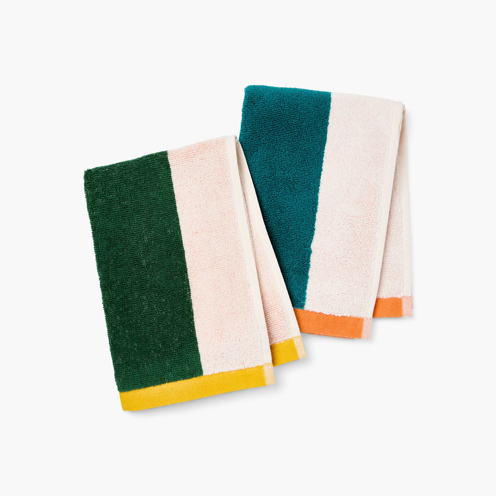 Laat je omhullen door de grafische, eigentijdse elegantie van de Lysiris badset. De vormen en kleuren roepen verre horizonten op en bieden de perfecte ontsnapping voor het seizoen.