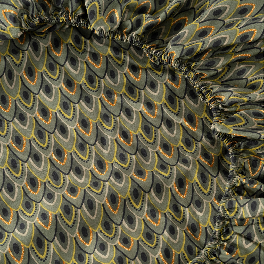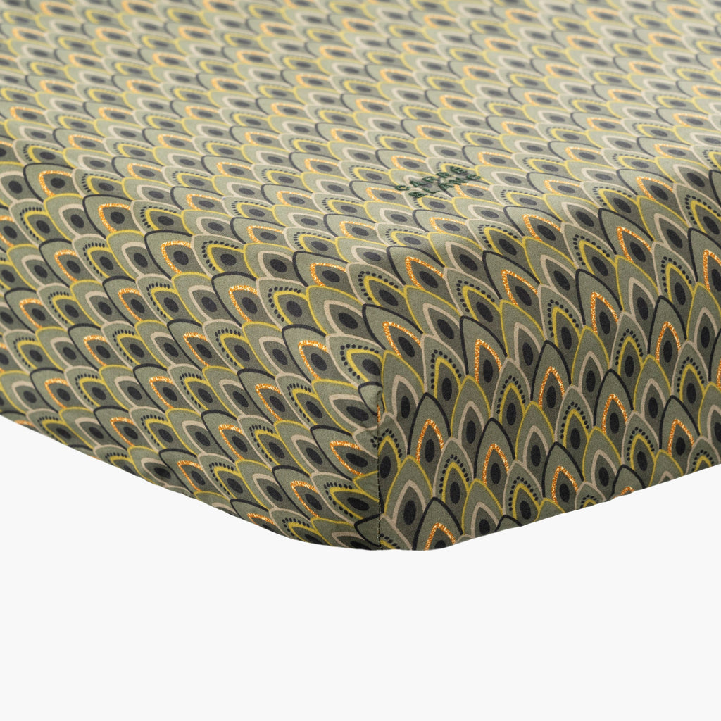 Het Silvalys hoeslaken is een creatie die verschillende tinten geel combineert in de vorm van kleine stippen over het hele oppervlak, waardoor een prachtig gouden effect ontstaat.