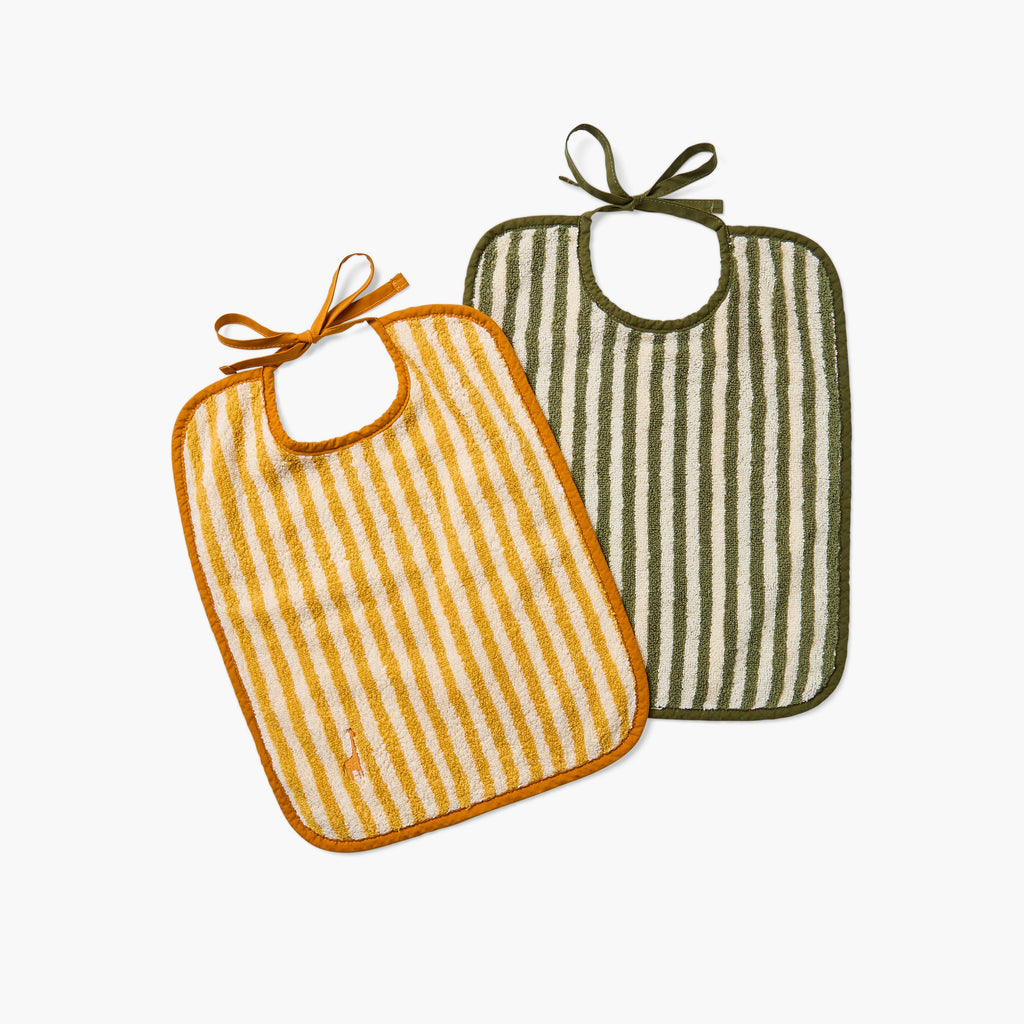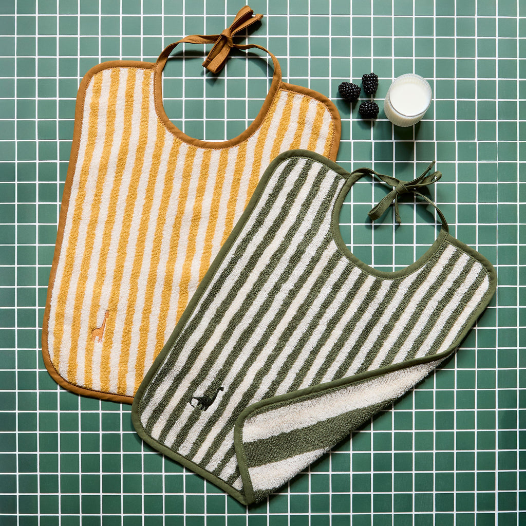Kies voor een badlinnencapsule waarbij brede strepen aan de ene kant contrasteren met fijnere strepen aan de andere kant, waardoor een mooi contrast ontstaat. Borduursels van giraffes of dinosaurussen voegen een vleugje fantasie en affectie toe.