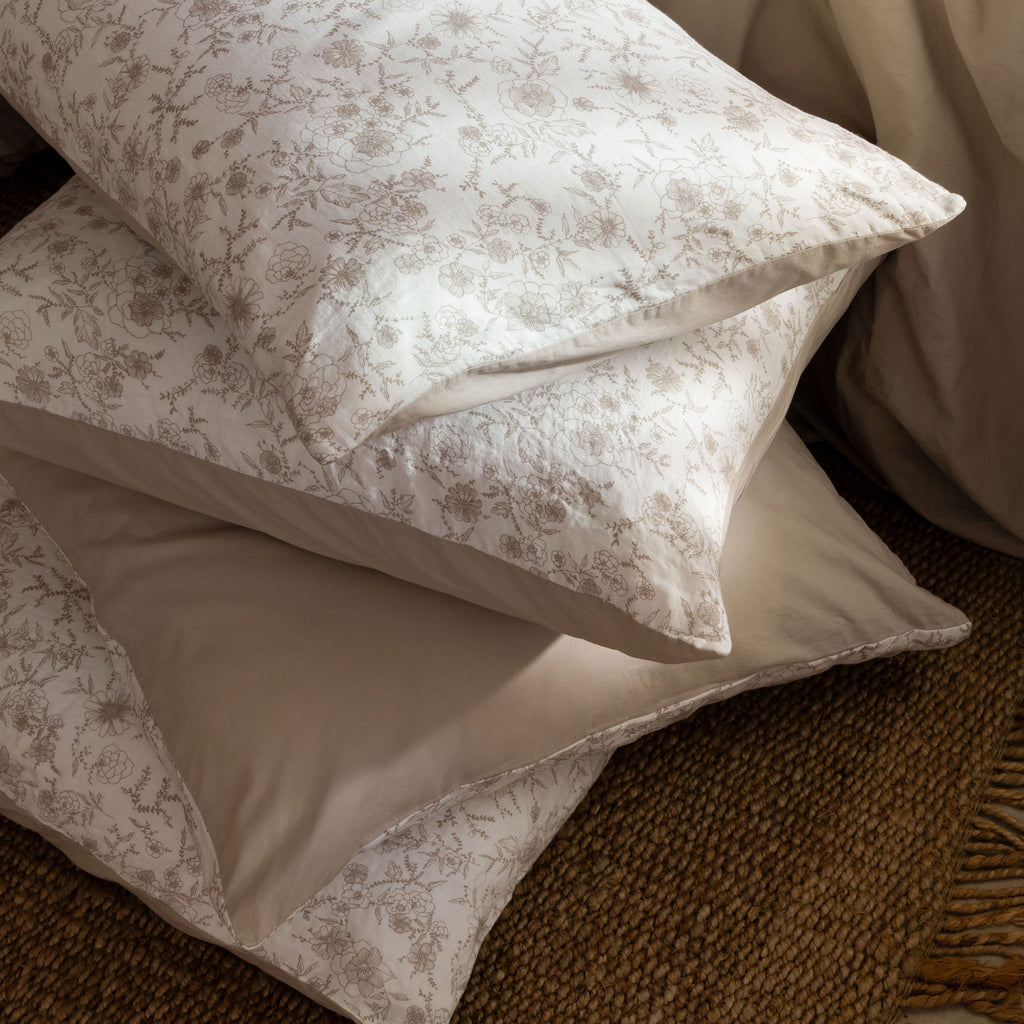 Songe grège gebloemde rechthoekige kussensloop in gewassen linnen en katoen