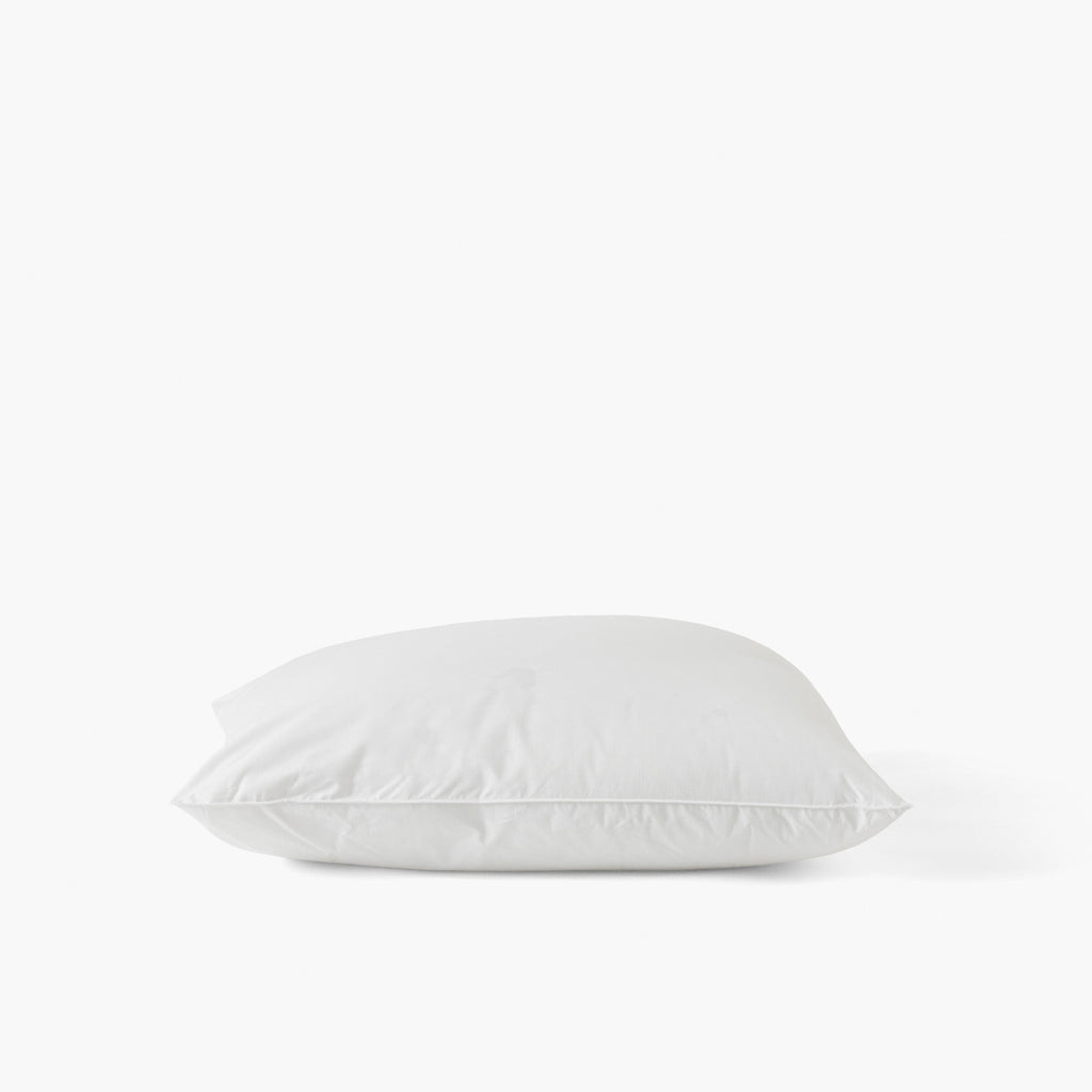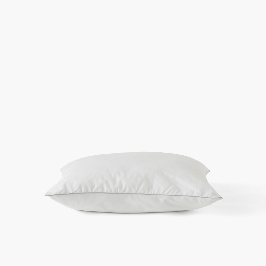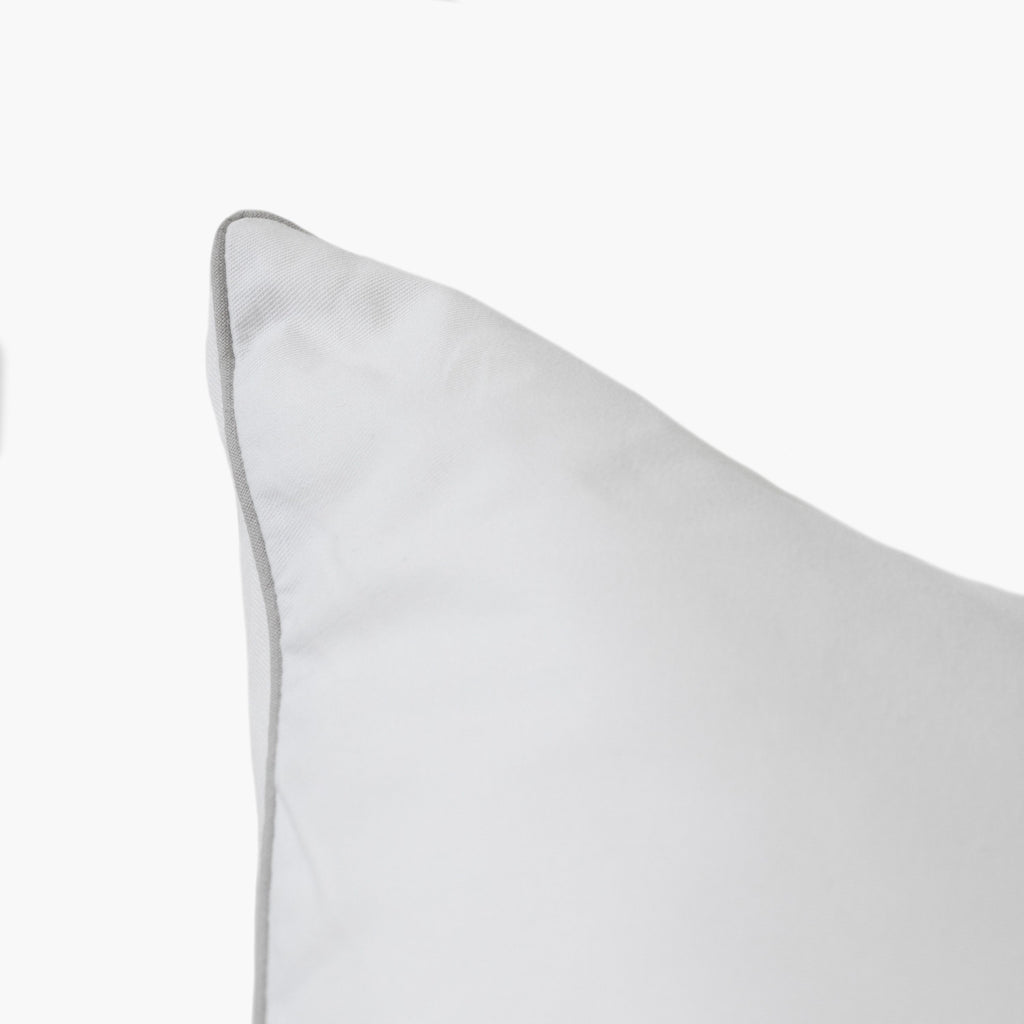 Een eersteklas synthetische vulling van 100% Dacron Suprelle-microvezel voor een zacht kussen voor rugslapers. Het Suprême Moelleux hoofdkussen heeft een 100% katoenen hoes met het Carré Blanc logo en een grijze bies;