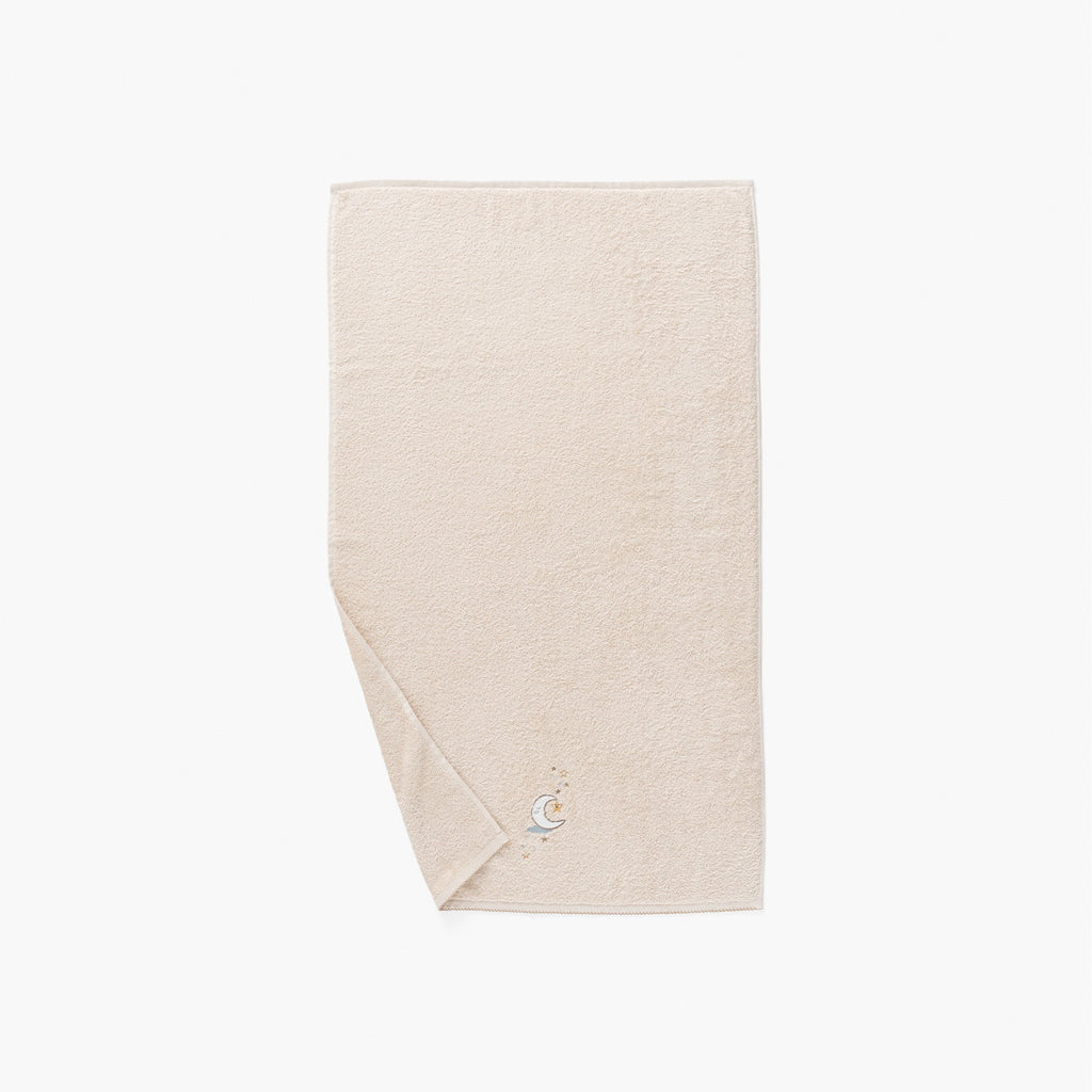 Je zult dol zijn op het badlaken Bienvenue, een essential gemaakt van GOTS-gecertificeerd biologisch katoen. Versierd met geborduurde motieven die staan voor dag, nacht, regen en mooi weer. Een stuk dat zachtheid en elegantie combineert.