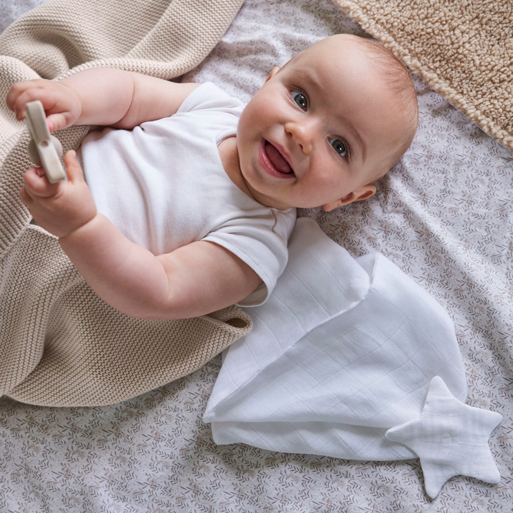 Offrez à bébé son tout premier doudou plat avec la collection Bienvenue. Fabriqué en 100 % mousseline de coton biologique certifié GOTS, il offre une douceur inégalée. Un instant magique pour les premiers moments de bébé.