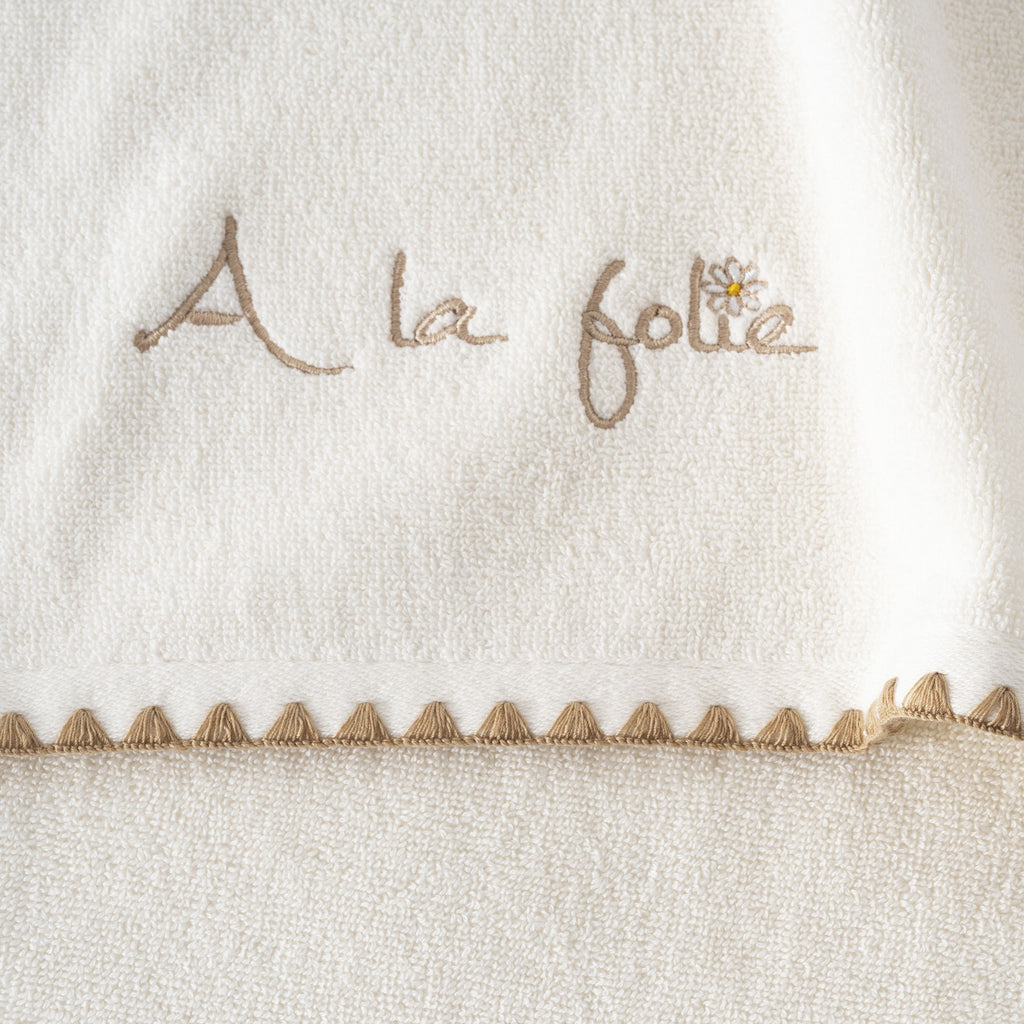 Inspirée d’un tendre jeu d’enfance, cette collection romantique dévoile un message secret : une broderie « à la folie ». Un design délicat, empreint d’amour et de poésie !