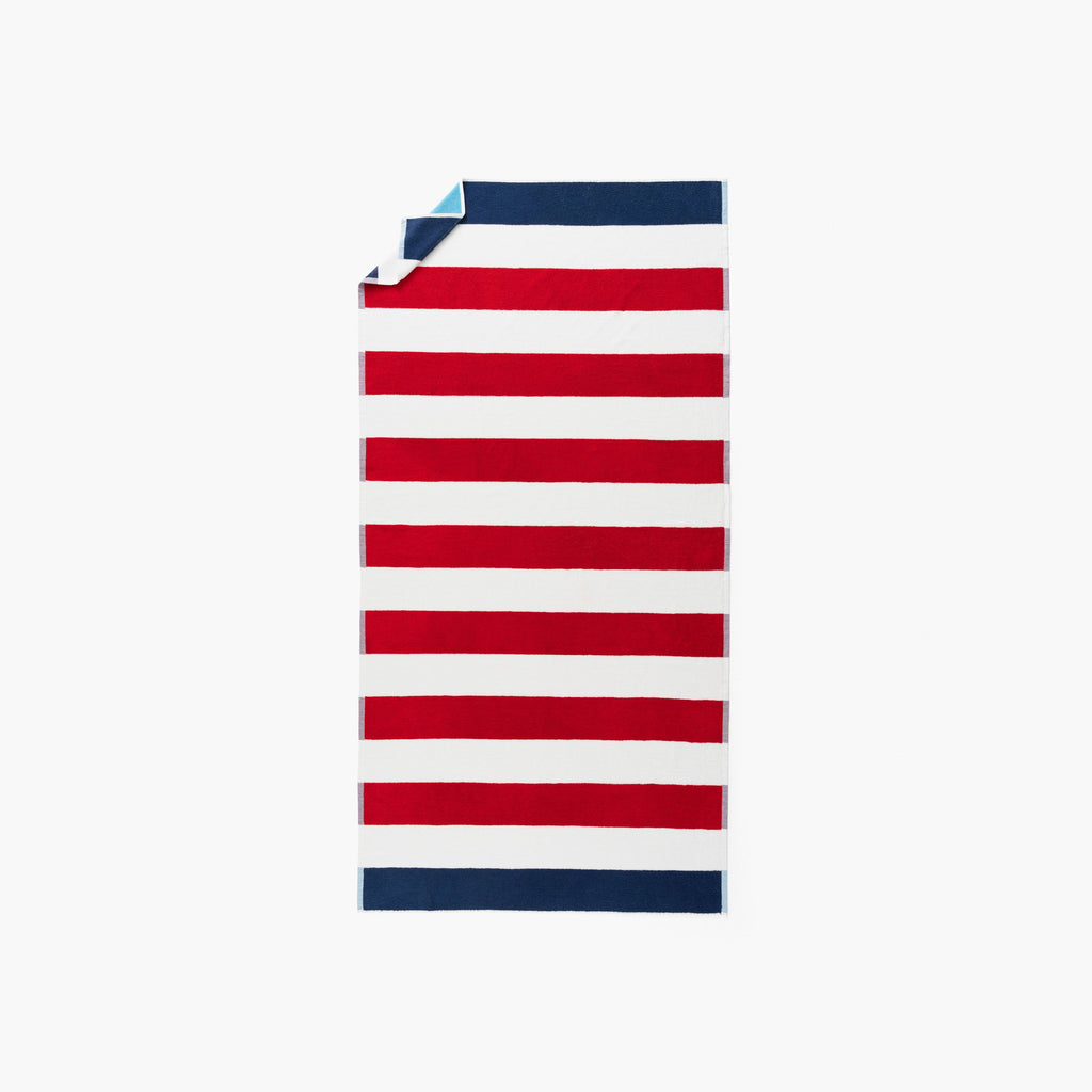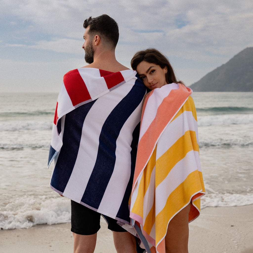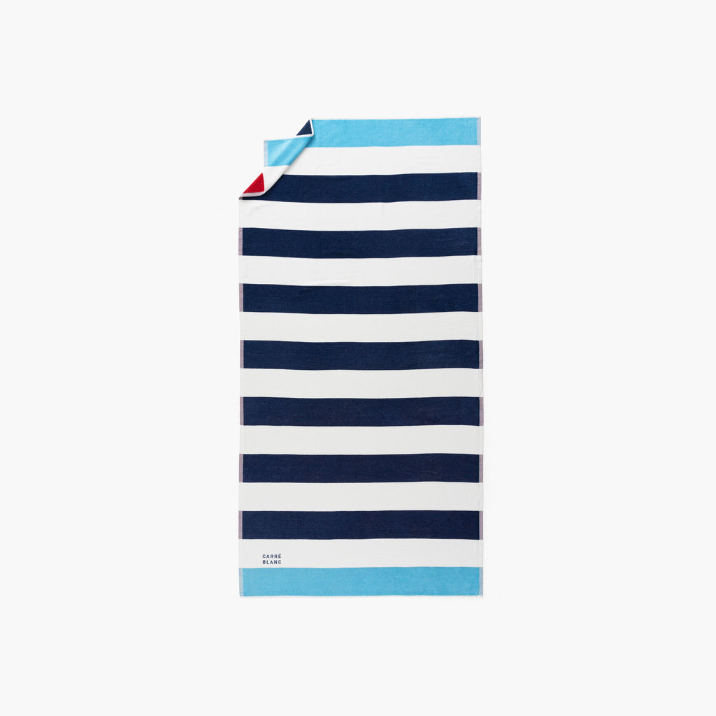 Plongez dans l'esprit bord de mer avec le drap de plage Rivage. Ses rayures nautiques élégantes et son toucher doux en velours promettent confort et style pour vos escapades estivales.