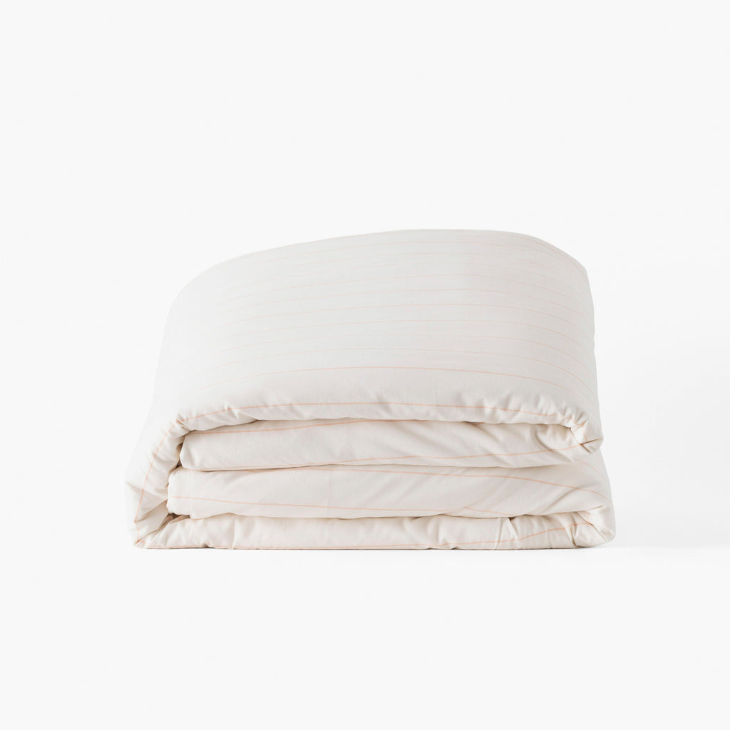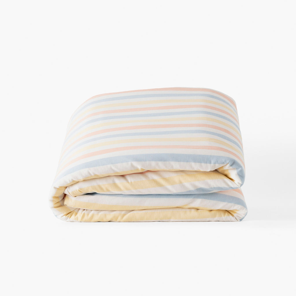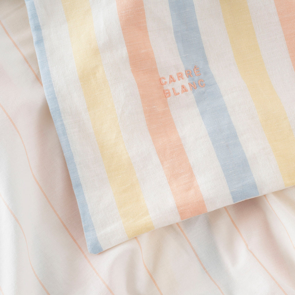 Housse de couette réversible lin et coton lavé Tempos sorbet rayé