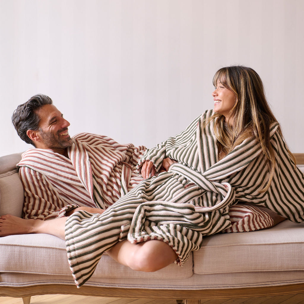 Offrez-vous un instant de douceur avec le peignoir en jacquard Combo. Unisexe et réversible, il se pare de couleurs vibrantes pour un moment plein de style. Vous allez l'adorer !