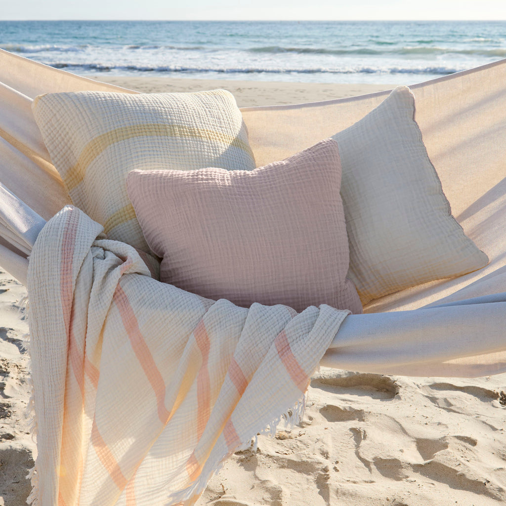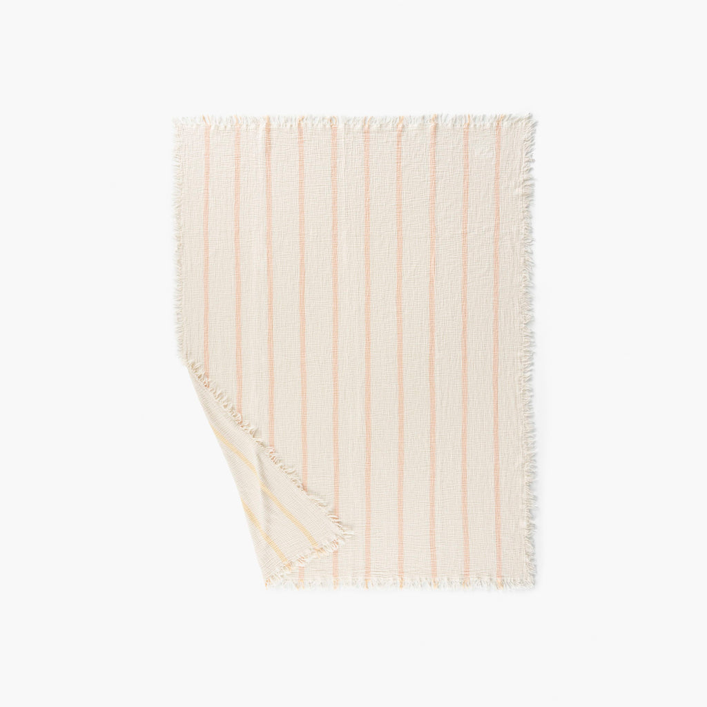 Le plaid Rythmo, en gaze de coton réversible, évoque la légèreté de la belle saison avec ses coloris pastels apaisants. Ses franges délicates ajoutent une touche de douceur et d'élégance à votre intérieur.