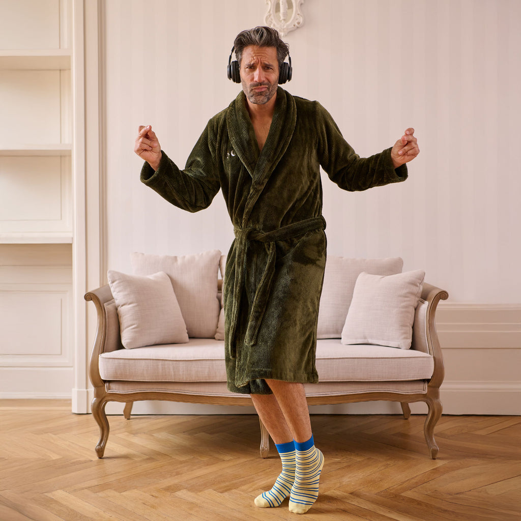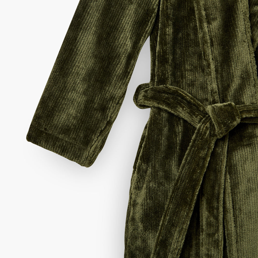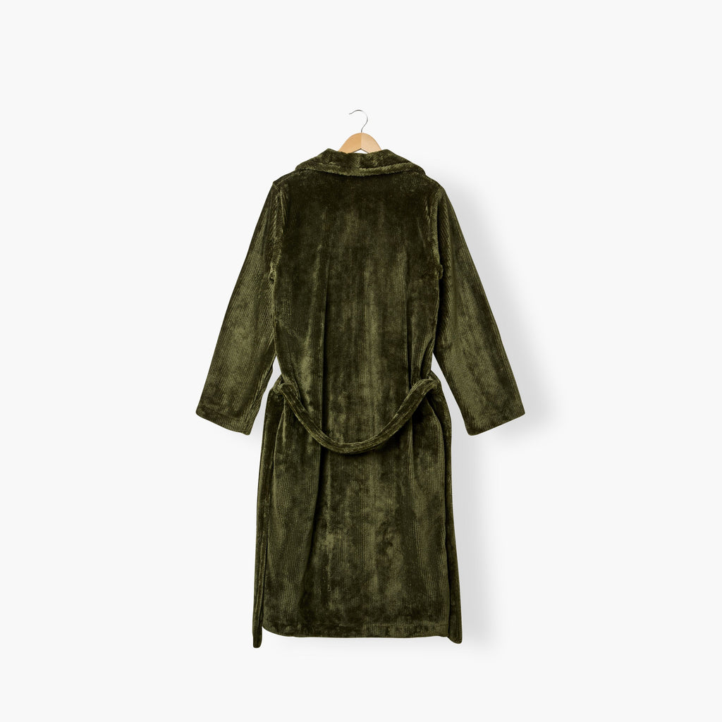 Confortable et élégant, ce peignoir à col châle présente une texture douce aspect velours côtelé. Il est équipé de poches latérales pratiques et d’une ceinture maintenue par des passants pour un ajustement parfait. Un essentiel cosy et raffiné pour vos moments de détente.