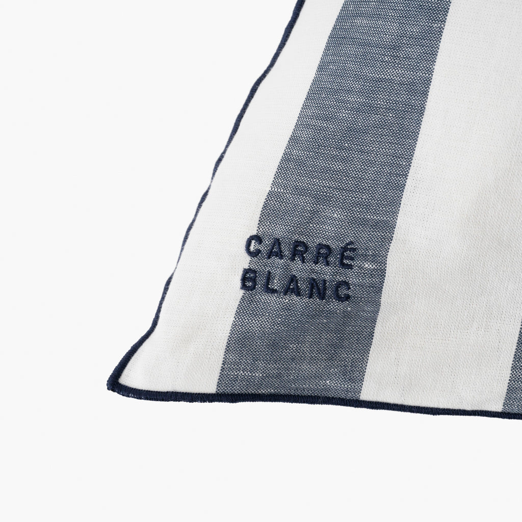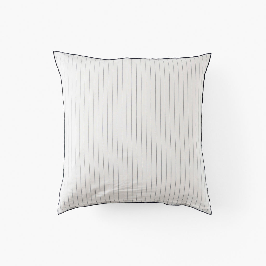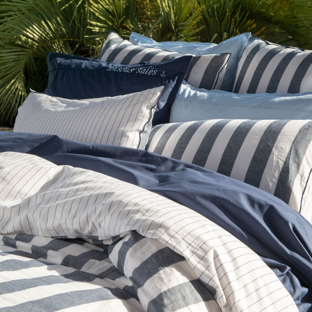 Taie d'oreiller carrée lin et coton lavé Tempos marine rayé