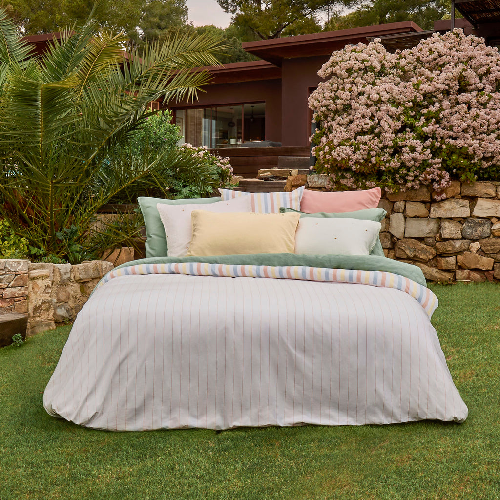 La collection Tempos, avec son double décor rayé, vous invite à jouer avec les couleurs et à créer des mix and match uniques. Un design multicolore pour des réveils joyeux chaque matin !