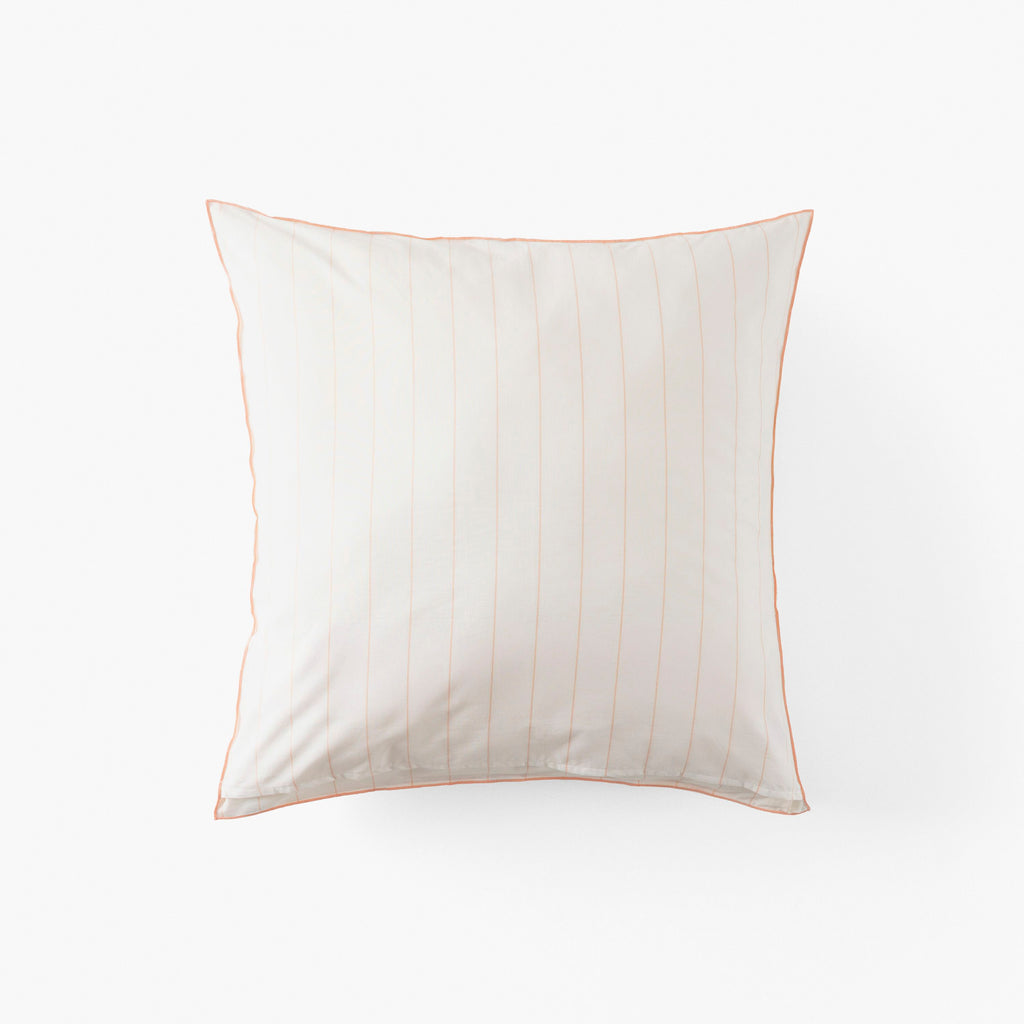Taie d'oreiller carrée lin et coton lavé Tempos sorbet rayé