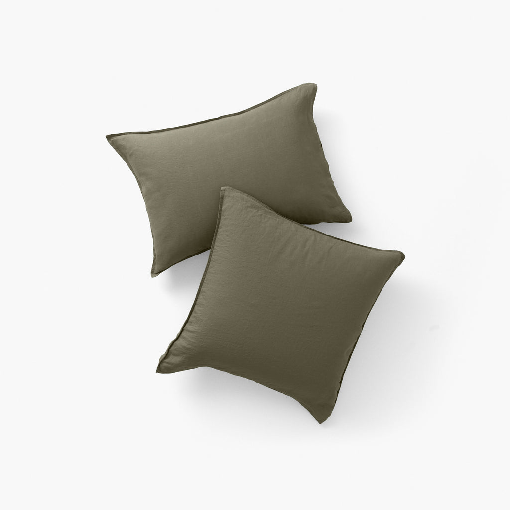 La taie d’oreiller Songe lin/coton a la particularité d'être bi-matière. Elle dispose d’une face en lin lavé des Flandres 165 g/m² très appréciée pour son aspect froissé et son pouvoir thermorégulateur, et d’une face en coton lavé 57 fils/cm² très aimée pour sa douceur au contact de la peau. Laissez-vous séduire par son coloris bocage tendance.